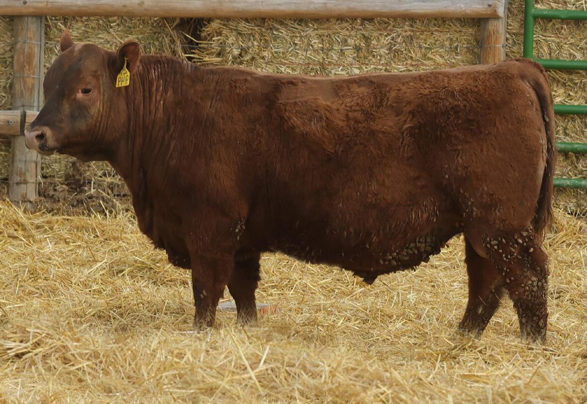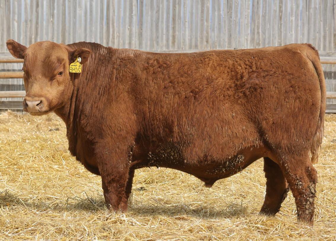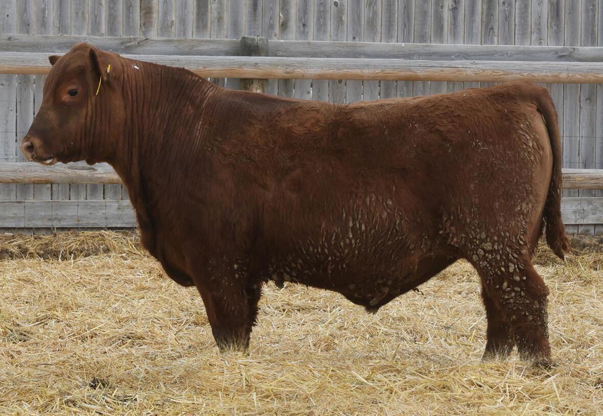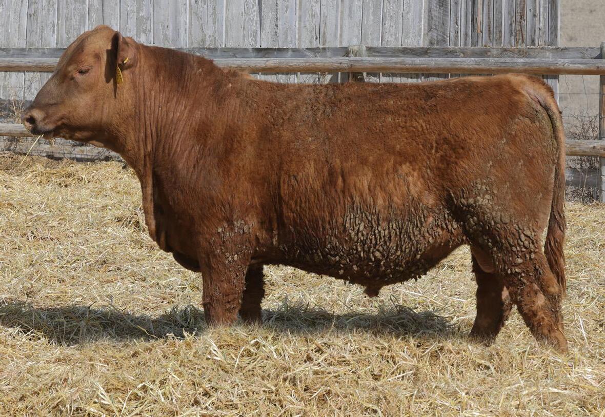Lot 2’s sire, 5L Genuine 1603-195C sold in our 2016 sale as a promising yearling with a 156 IMF ratio. 8 years later he’s Red Angus’ grand ole man of PRIME. Of course, he’s gone and there is virtually zero semen available, so Genuine sons have been topping bull sales across the country for the last 12 months. But this sire line offers much more than just quality grade. Genuine’s 11-old-dam calved this spring, and one visitor described her teat size as something you’d brag about on your best 3-year-olds. Genuine also excels for fertility, also inherited from his dam who posts a track record of: 366-day calving interval and average progeny ratios of: 104 weaning, 113 yearling, 115 IMF and 105 REA. Lot 2 puts together an ideal growth curve and composition: 5% lighter at birth, 5% heavier at weaning, 6% heavier at yearling, 7% faster ADG and 18% greater IMF.