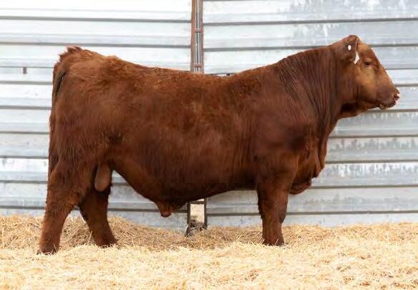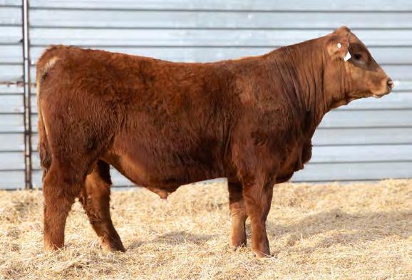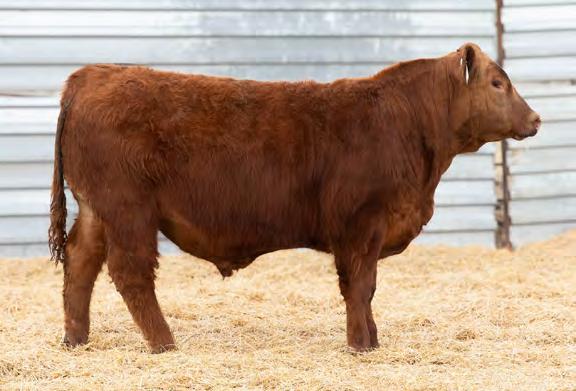 This calf has done nothing but impress us since weaning. This is one of the younger calves in the sale. He is out of a Maximus son we purchased from Biebers and used to clean up the cows. You tie in on Maximus and Hard Drive with Primrose and Rose cow families on this bull, you can’t go wrong there. He ratioed over 100 both in weaning and yearling weights.