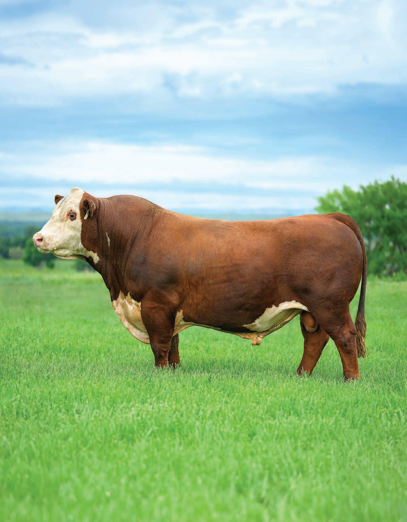 and 109 Yearling. Generations of what we’ve been breeding for. Role model for Hereford type and kind. Old cow’s calf but should produce replacement females. #11 for Composite Feed Efficiency.