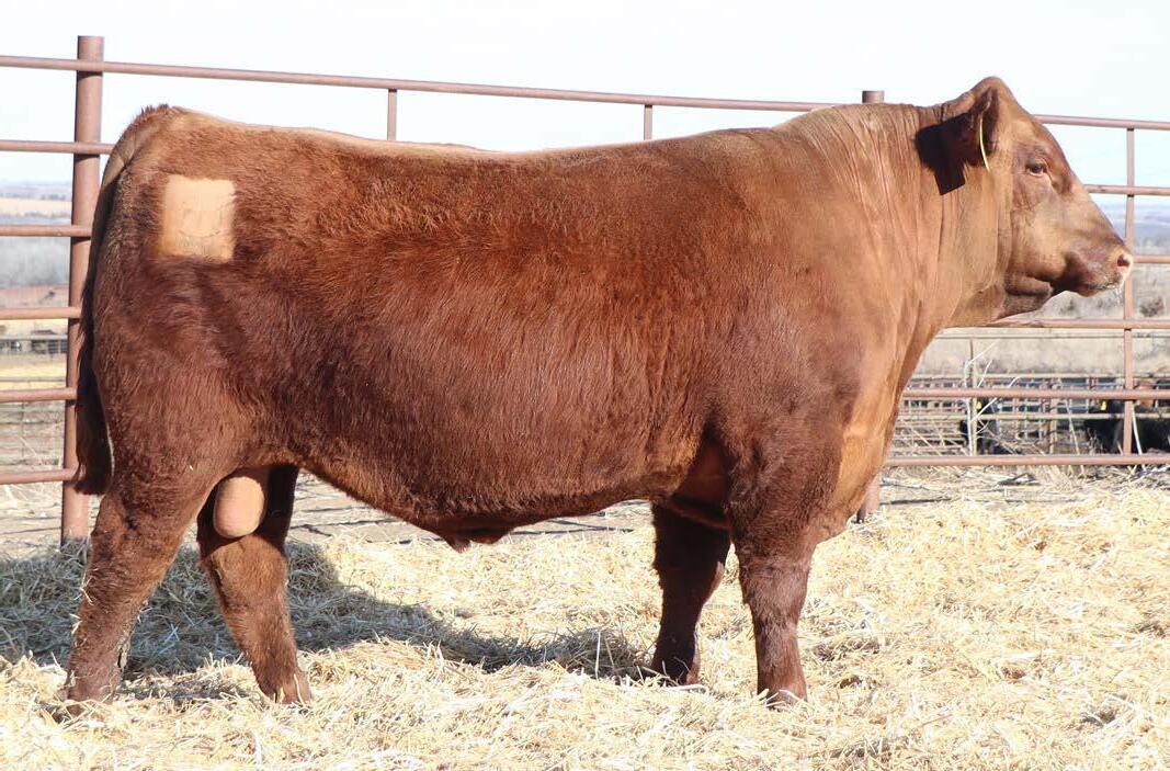 If you need to add some eye appeal to your calf crop, this bull can do it. He will also add some growth and profitability in the feedlot. You look at him and you see performance because he is very long-bodied, thick and a lot of capacity. Expect great things with this bull.