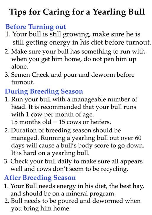 All bulls have received BRVD, P13 and a live respiratory virus vaccine. They were poured for internal and external parasites.