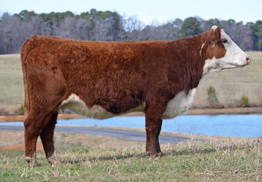 We believe that the 130J Donor cow is the missing piece needed to take the E. Carroll Joyner BEU Hereford program to the next level. We’re grateful for the opportunity to partner with Five J’s Cattle Company on this journey to take a solid set of Hereford cows and try to build an elite operation. 130J comes from the heart of the Innisfail program in Georgia, she’s slick haired, dark red, short marked, and sets an almost impossible amount of muscle and rib shape on a near flawless skeleton. In a world where numbers help market cattle, she excels in growth and carcass traits, while keeping maternal traits well above the average. Did we mention that she has the feet and udder quality true cattlemen dream about.