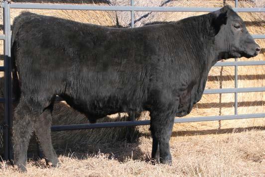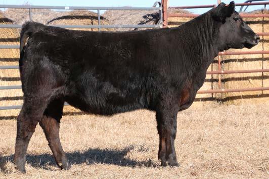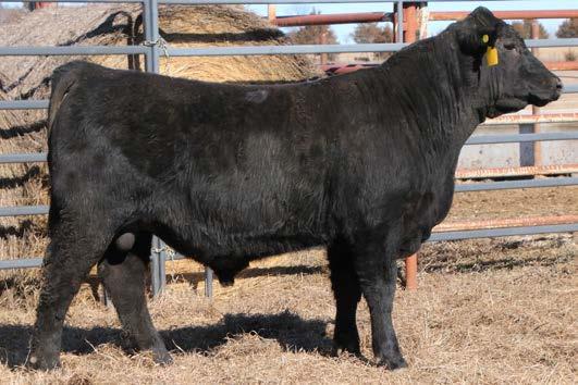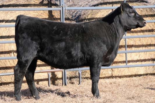 Thedford daughter from a first calf heifer. She is Top 30% RE, Top 25% BW and $G, Top 20% DOC, Angle and $M, Top 15% HP, CEM, $B and $C, Top 10% WW, RADG, Milk, MH, CW, and $F, Top 5% YW, Top 4% SC, Top 3% YH, and Top 2% CEM and $W.
