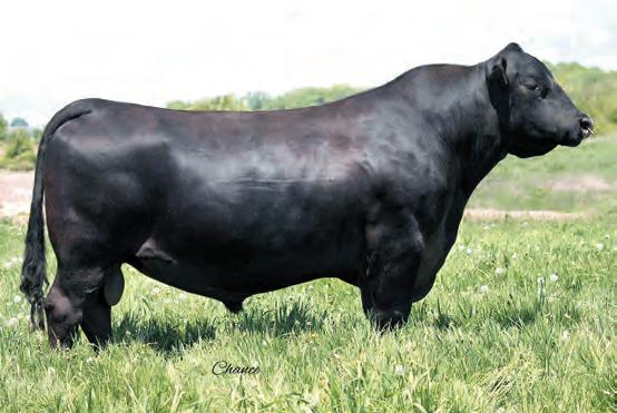 Nice young bull that passed breeding soundness exam and we ran him with a small group of cows this summer to clean up after being artifically bred. He is his a high weaning weight, high yearling weight sire with a docile attitude. Good carcass numbers that has been genomic tested and parentage verifid.