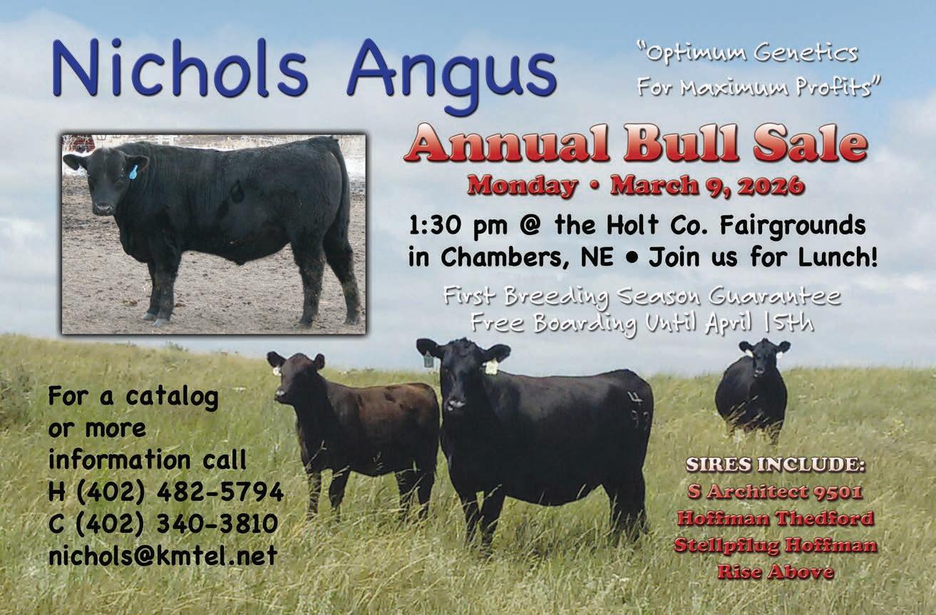 Springtime. Well, that sure came fast, and we are already well into 2026 at the Nebraska Angus Association. Member production sales have been in full swing, with a sale nearly every day throughout February and March. Sales have been trending upward with record highs, and producers are earning top dollar for Angus genetics. Hard work is paying off, and I hope that continues for all our cattle producers.