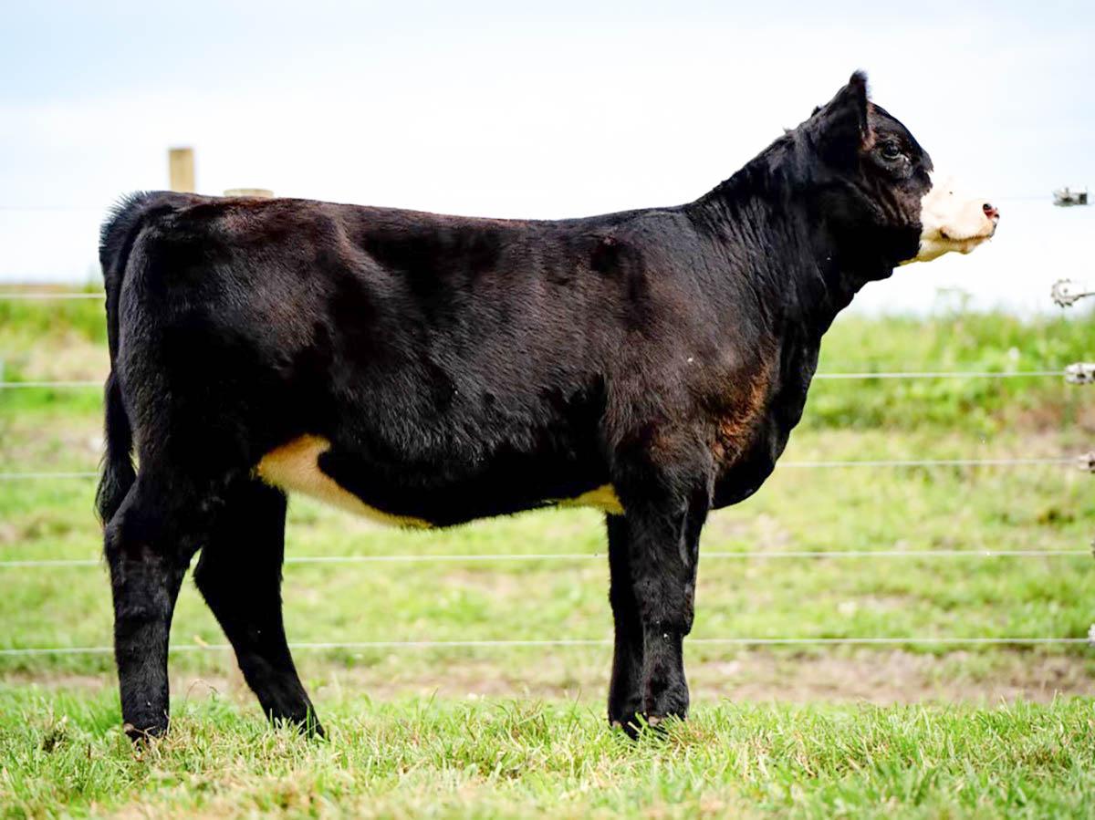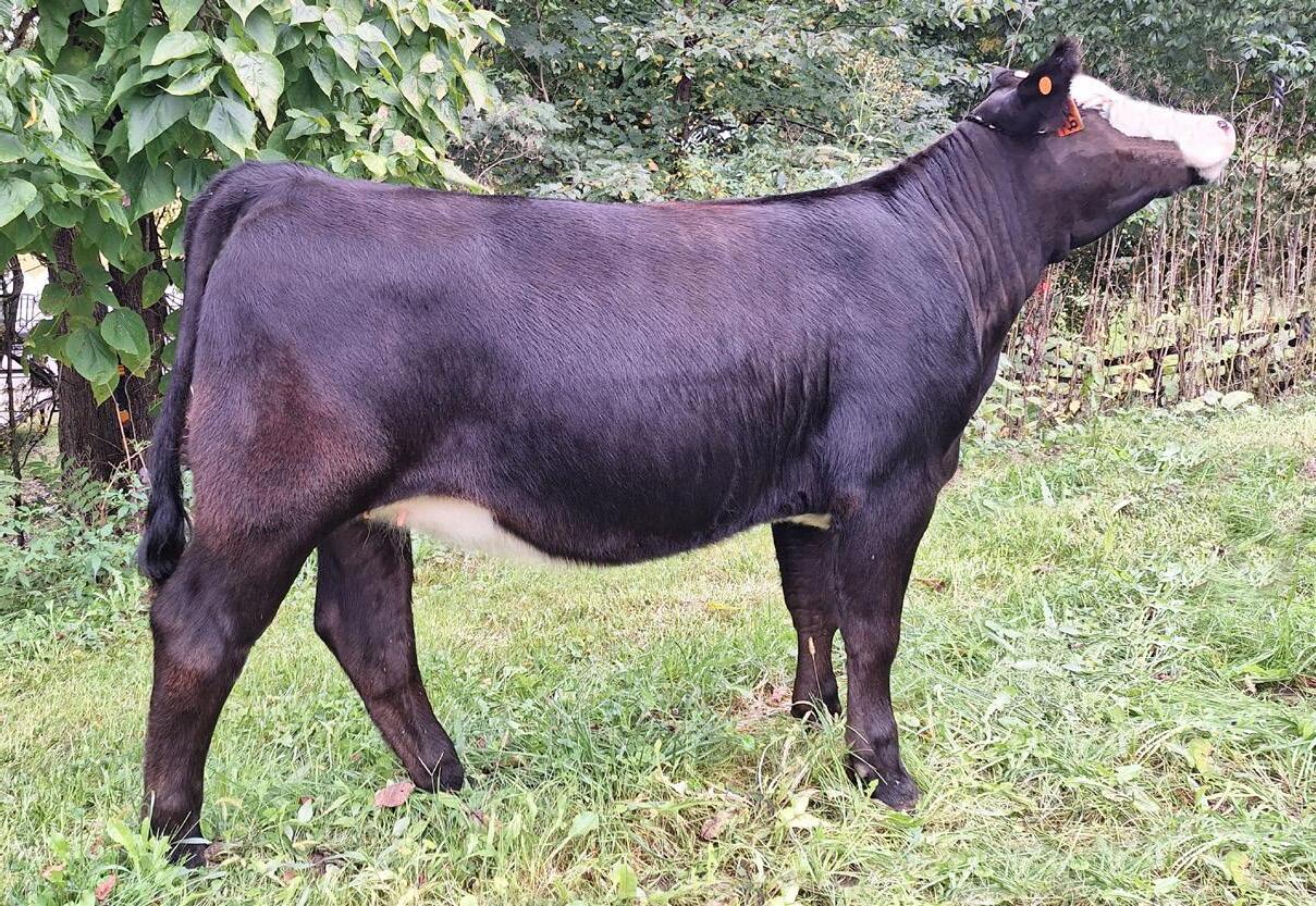 Due 10/05/2023 to WLE UNO MAS (2532016). This heifer is a moderate framed, very complete heifer. she is a female that will make a very complete, easy keeping cow. she traces back to a really good silver towne cow family that milks very well.