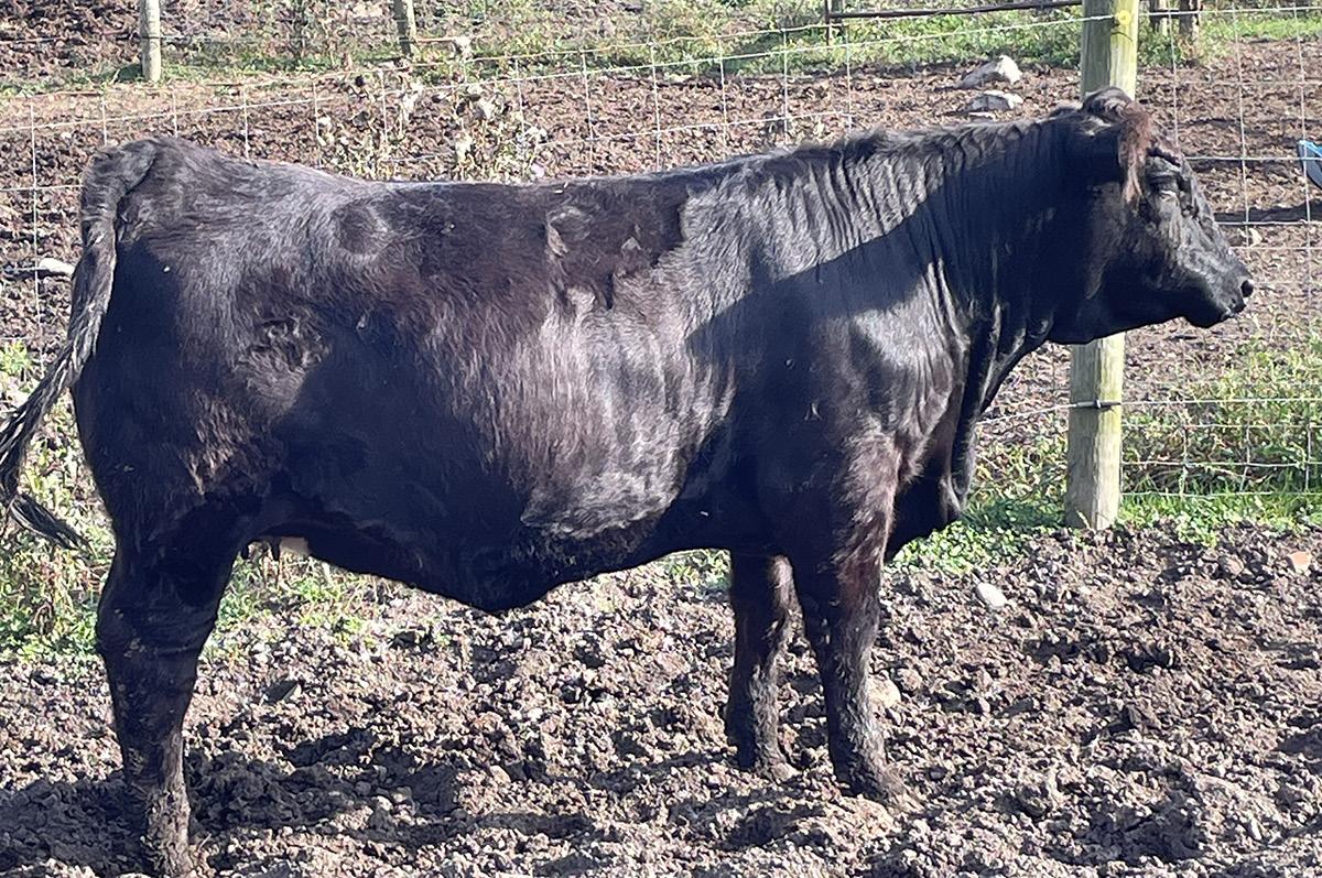 Due 12/14/2023 to Tradecraft (#3124189). This black cow is a beauty. She has a good pedigree, a good personality and is a good dam. She throws consistently nice calves, raises them well, and never misses. She is confirmed bred to Tradecraft for late this year.