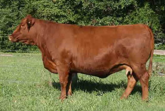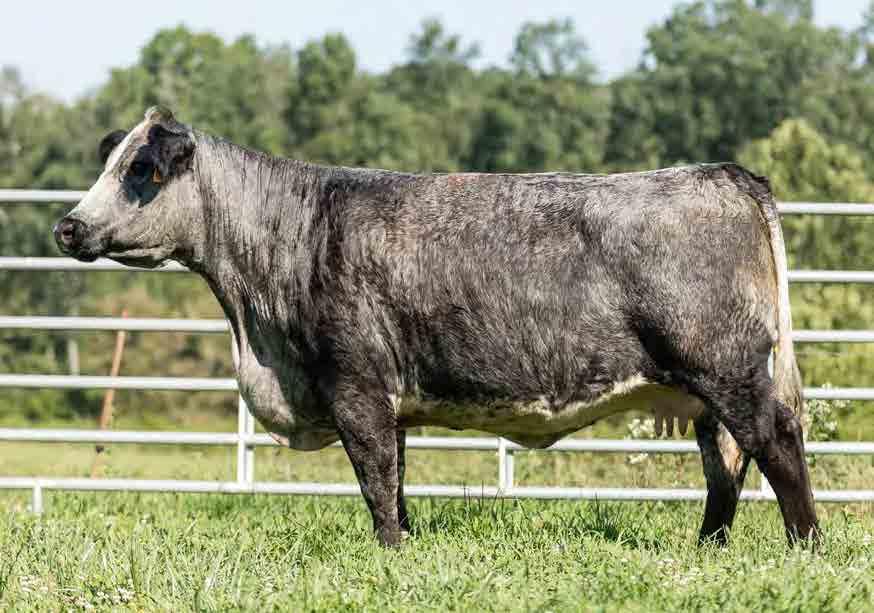 Indigo has been flushed three times, averaging 11 viable embryos per flush. She has sons working as herd bulls for Chris Pitts of Erin; Wayne Aldridge and Kevin McGehee of Lewisburg; Whitney Willis of Hillsboro; Fox Farms, Centerville; Jack Beaty of Jamestown; H&H Cattle, Vinemont, AL; and Ray Bean, Eastaboga, AL.