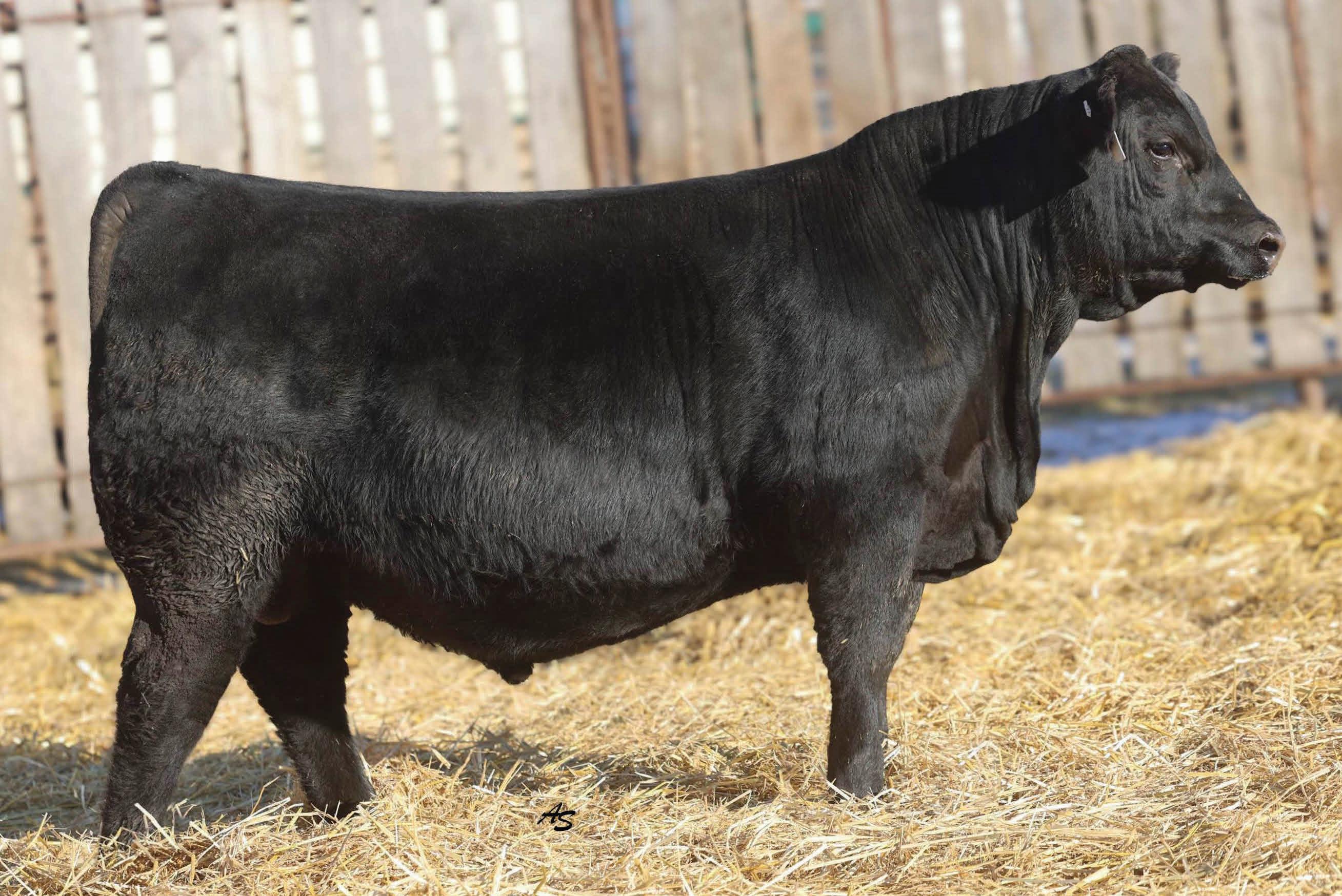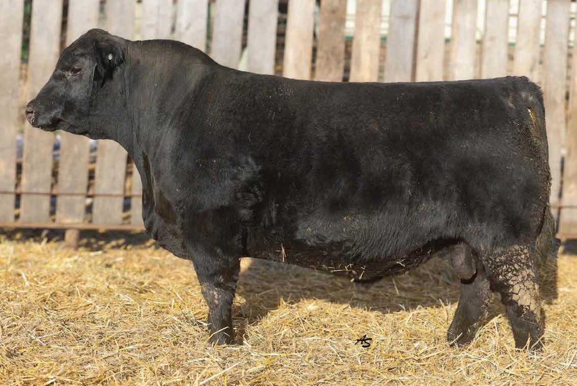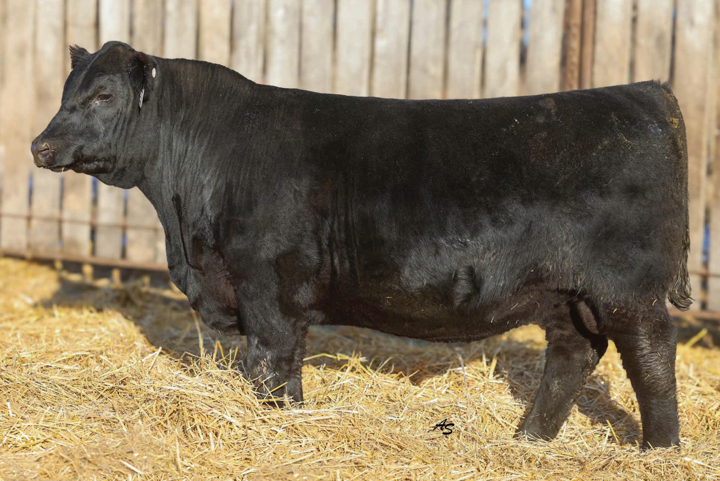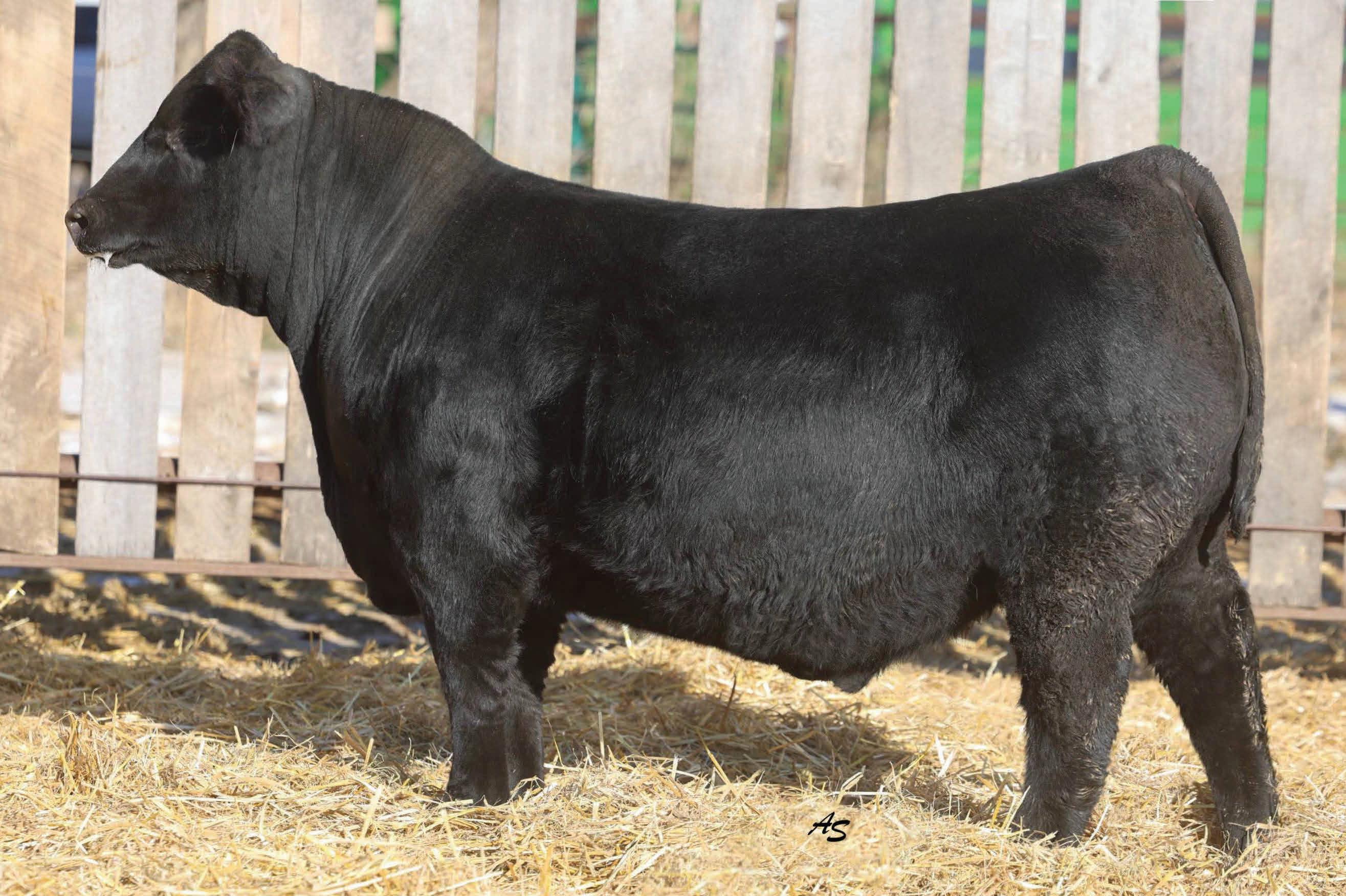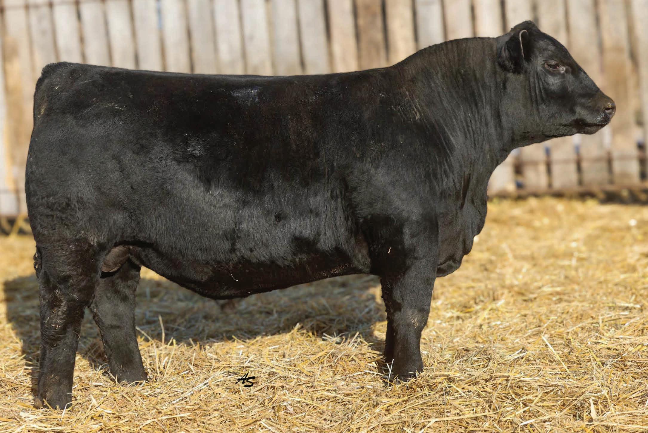 A complete runaway performance bull with genomically enhanced EPD’s in elite categories across multiple traits. This bull combines extreme carcass metrics, all while holding together his spectacular visual phenotype. This one would be fun to have sire a load of either feeder or fat cattle. From a genomic standpoint, this young sire ranks in the top 1% for WW, top 2% for YW & $W, Top 3% for YH, CW, and $C, top 5% $B, and top 10% for Marbling, Angus on Dairy, $F, & $G, top 15% for Ribeye Area, MW and Functional Longevity. Although the BW EPD is elevated on this particular bull, his actual birth weight is 89 lbs, just perfect for making growthy calves! Don’t miss out on a great opportunity to add a bull that would combine a tremendous amount of superior phenotypic and genotypic traits.
