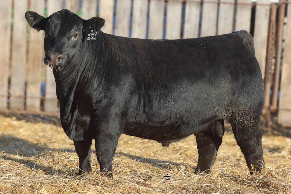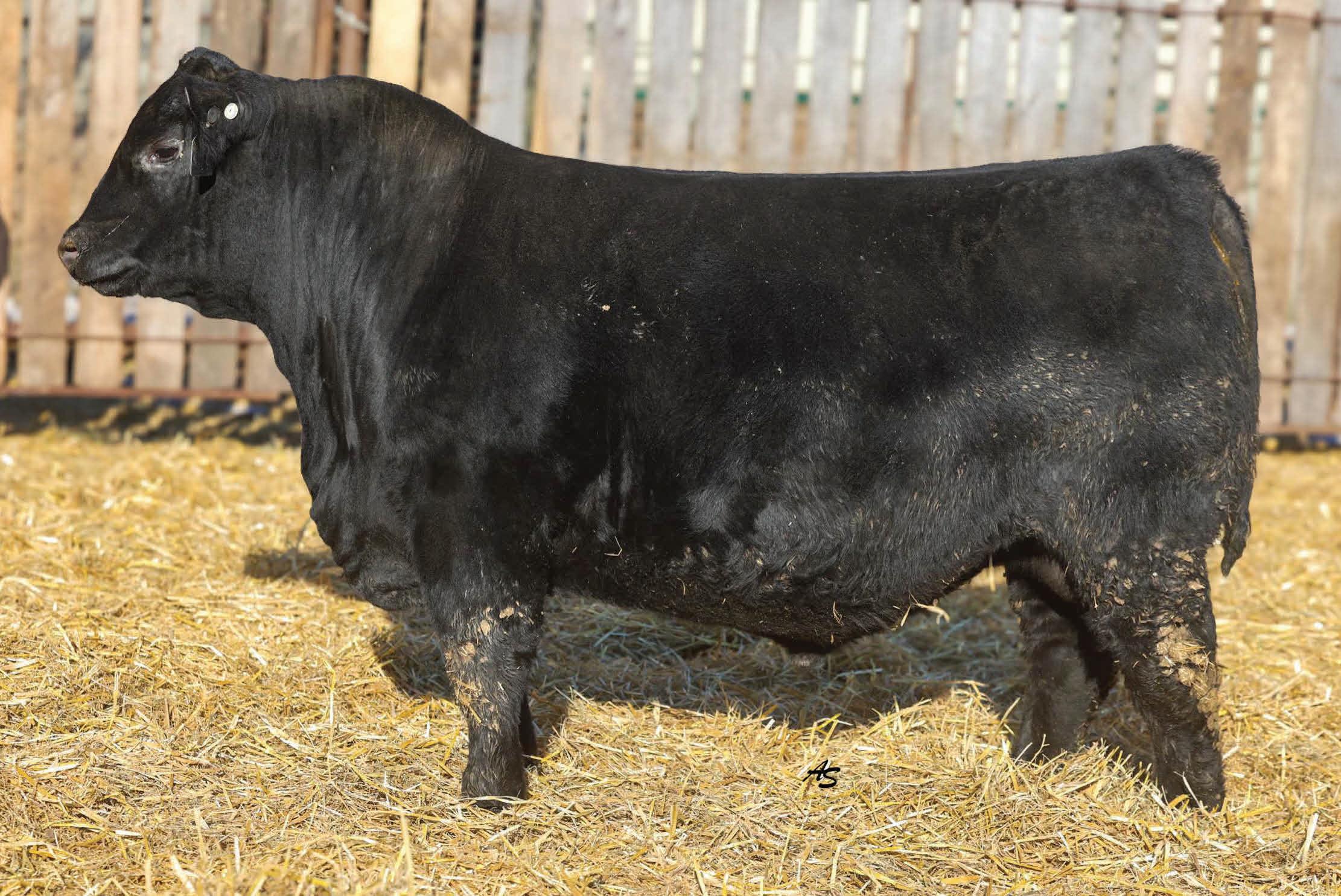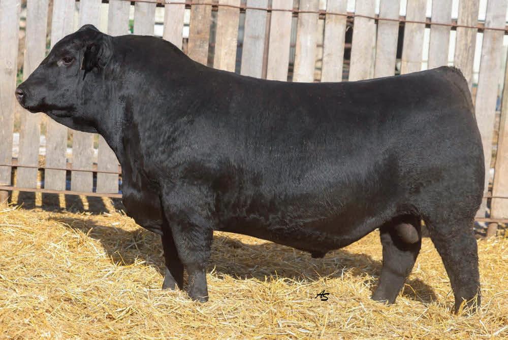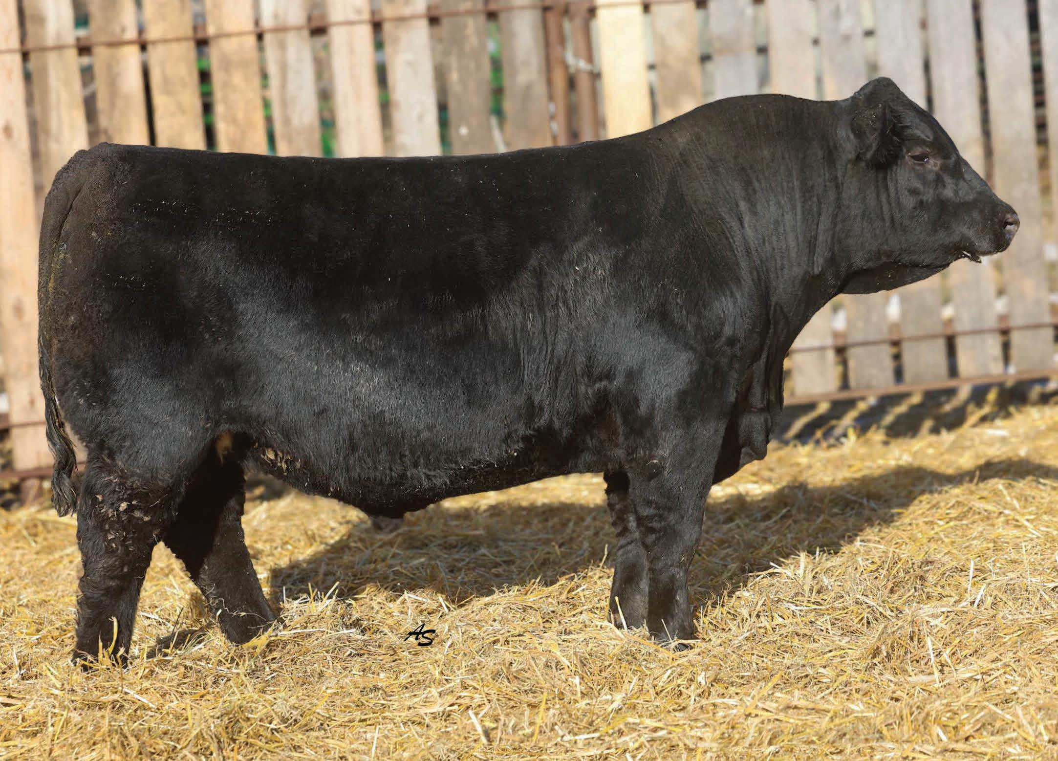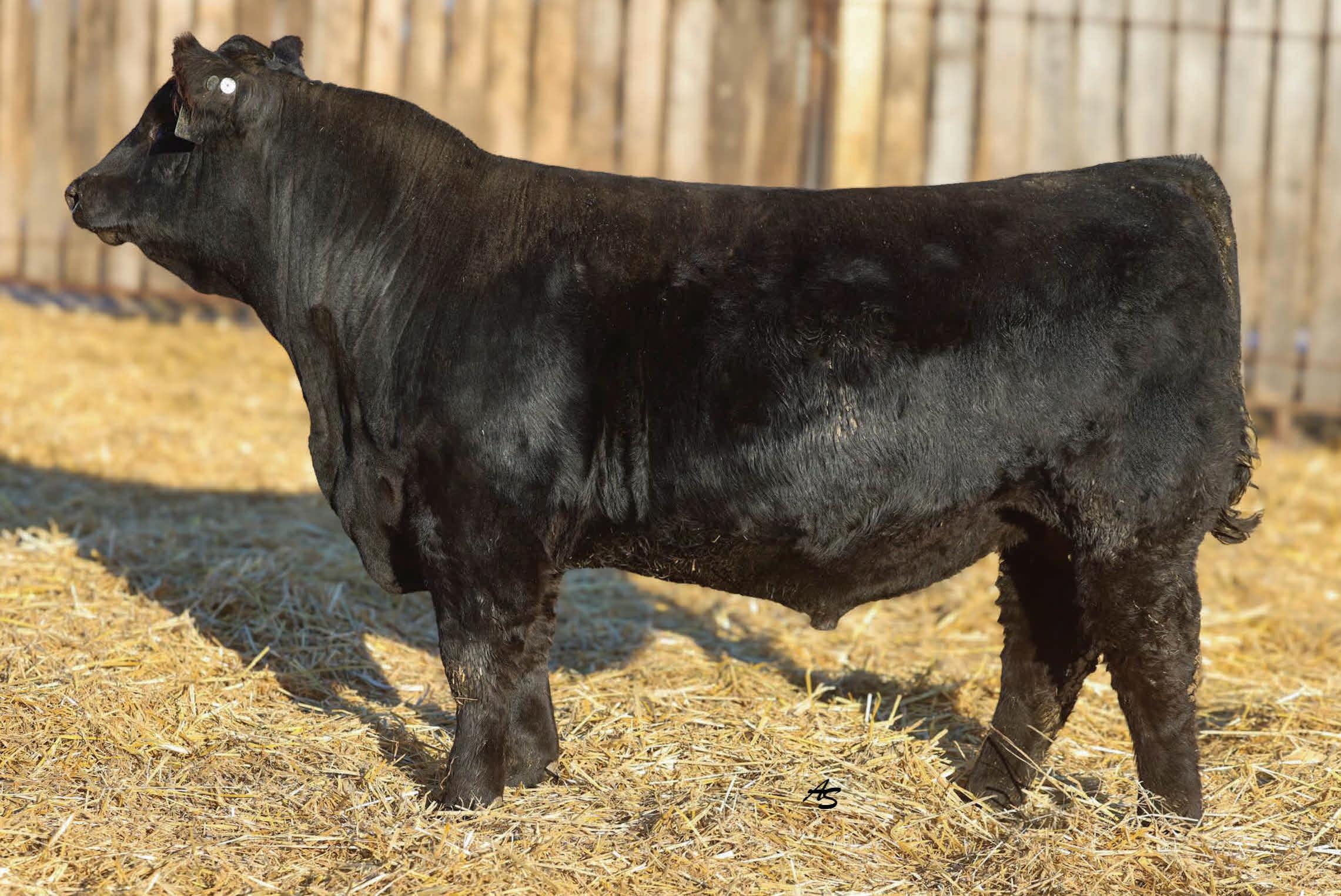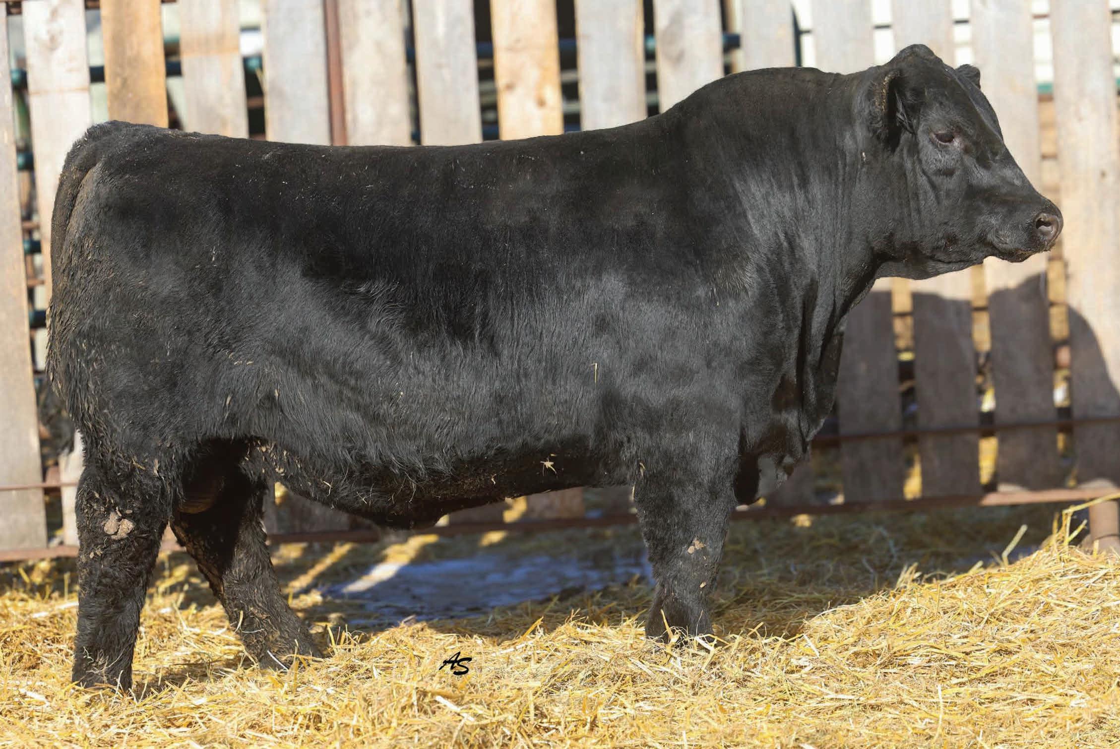 A complete runaway performance bull with genomically enhanced EPD’s in elite categories across multiple traits. This bull combines extreme carcass metrics, all while holding together his spectacular visual phenotype. This one would be fun to have sire a load of either feeder or fat cattle. From a genomic standpoint, this young sire ranks in the top 1% for WW, top 2% for YW & $W, Top 3% for YH, CW, and $C, top 5% $B, and top 10% for Marbling, Angus on Dairy, $F, & $G, top 15% for Ribeye Area, MW and Functional Longevity. Although the BW EPD is elevated on this particular bull, his actual birth weight is 89 lbs, just perfect for making growthy calves! Don’t miss out on a great opportunity to add a bull that would combine a tremendous amount of superior phenotypic and genotypic traits.