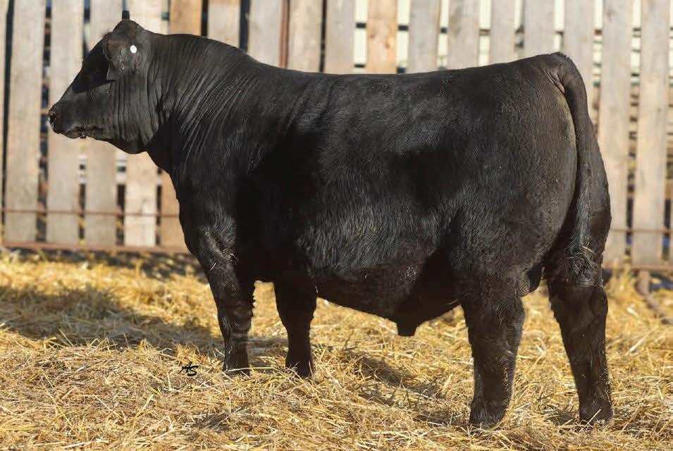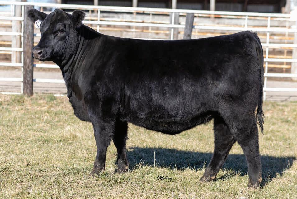 Take a step back on this one and realize he is one of the youngest bulls in the offering. And yet, look at how he’s developed relative to the group. It certainly helps when he achieved the second highest weight per day of age amongst the spring bulls. Do not sleep on this one. We have full sisters being kept back in the herd from the ET program. His donor dam sold in our 2024 sale to Gilliland Livestock in California as one of the female features of the sale. He is long spined and portrays a stylish profile with added dimension. This bull genomically ranks in the top 2% of the Angus breed for yearling weight and 9% for weaning weight. The carcass parameters are balanced and toward the top of the breed as well. His granddam is a pathfinder, Nagorske Eileen 9031 who continues to sell valuable progeny in our program.