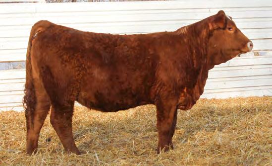 A red Convoy daughter that comes from a very productive cow in E716. A black full brother sold to Hanna Bowen in last years sale and her calf the year prior was a high selling Tesla son to Cody Gentzkow. She also has two very nice daughters working in our herd.
