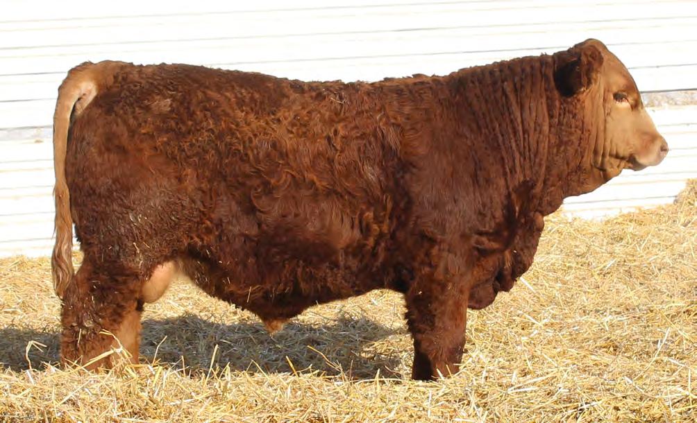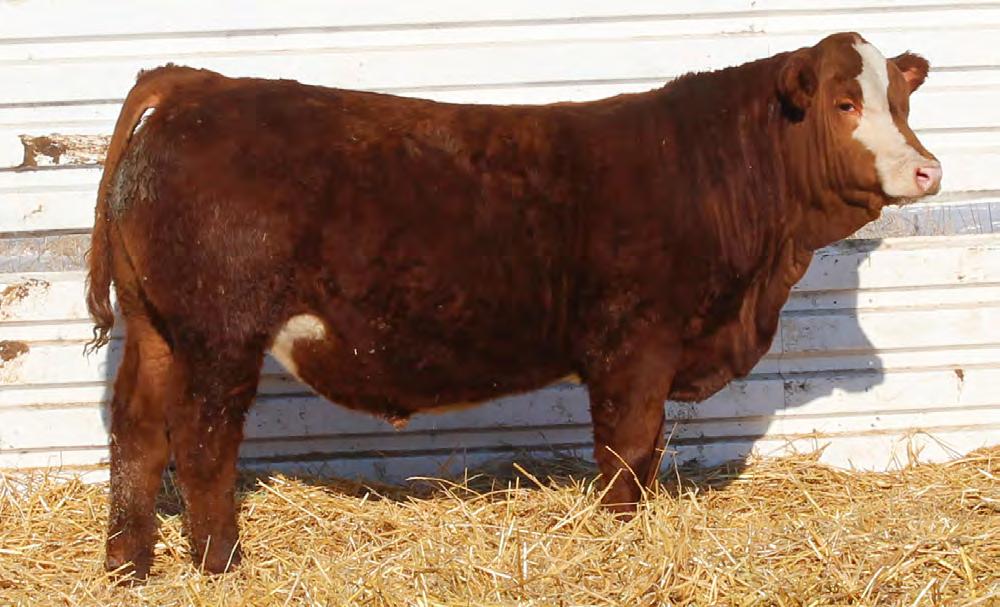 Standout herd sire prospect. His dam is our 937E donor we purchased out of Springcreek’s dispersal. Her Walk the Line daughter is a standout and a future donor prospect in our bred heifer pen. 937E has flushed very well for us as we are expecting over 20 calves from her this coming calving season. M1 is darn good, he puts together the entire package along with an exceptional disposition. True herd bull here that I believe can add a lot of value and improve on some real-world performance and structural traits that may have been sacrificed by putting the paper ahead of the hooves on the ground. I don’t expect his BW EPD to truly corelate how his progeny will calve as he is small headed and built right and transitions smoothly through his shoulders to his neck. Big time Herd sire that boasts many traits that makes Simmental a Simmental. Big wide top, thick butted, big scrotal, and very easy to get along with.