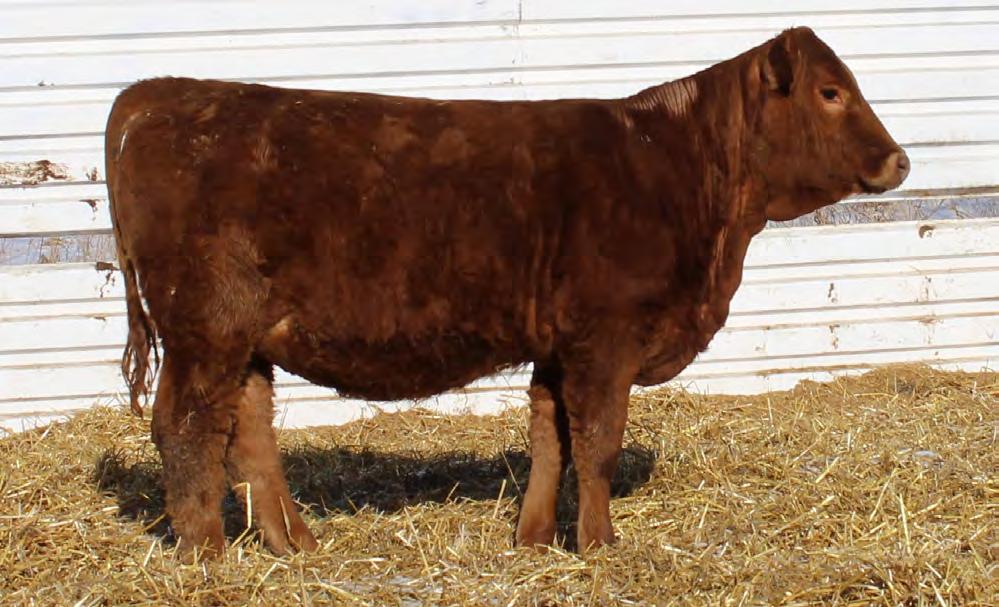 Dark cherry red heifer out of a good Bloodrunner daughter. I would expect udder quality to be strong as all the Bloodrunner females have very nice udders. Same cow family as the M2 Heifer.