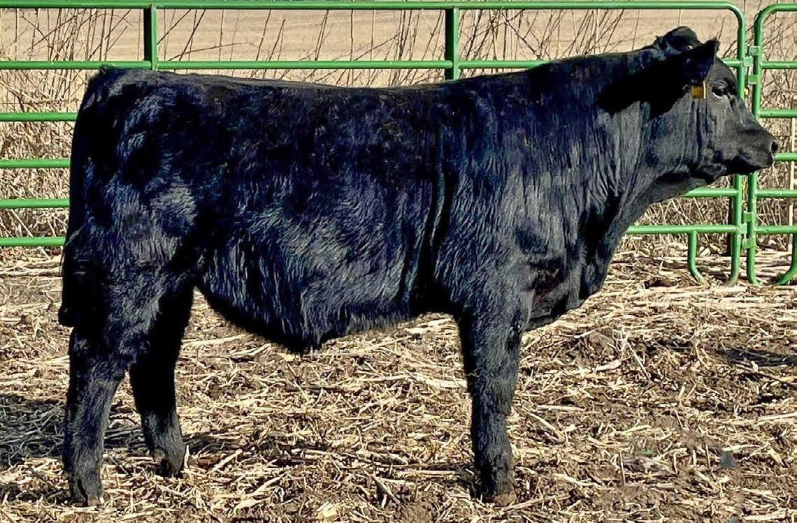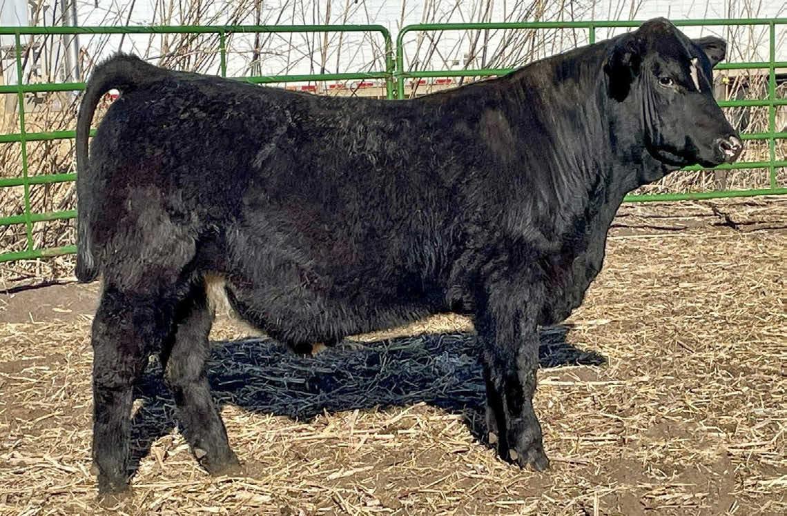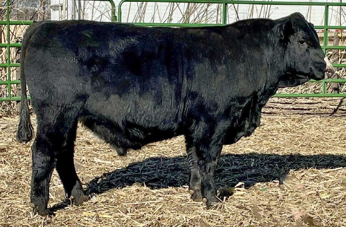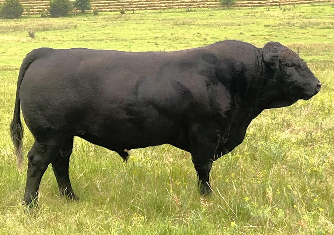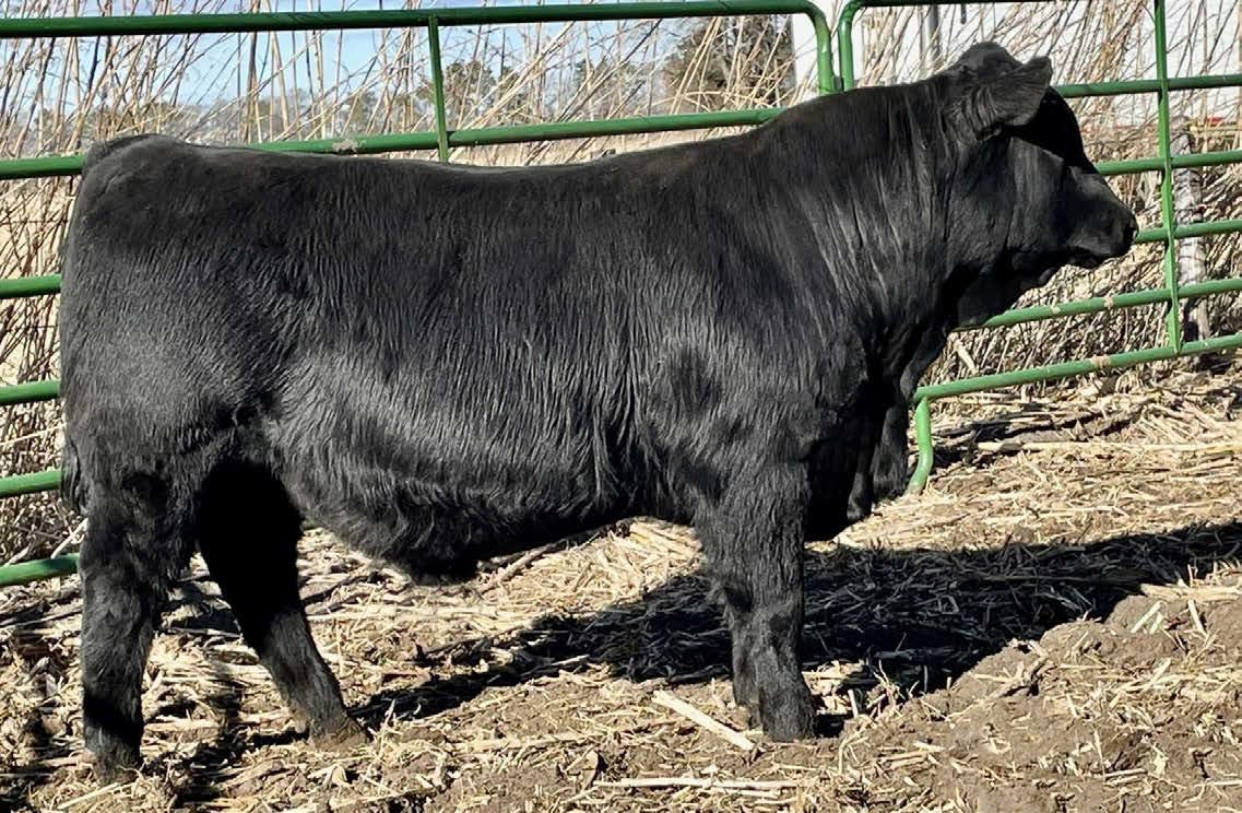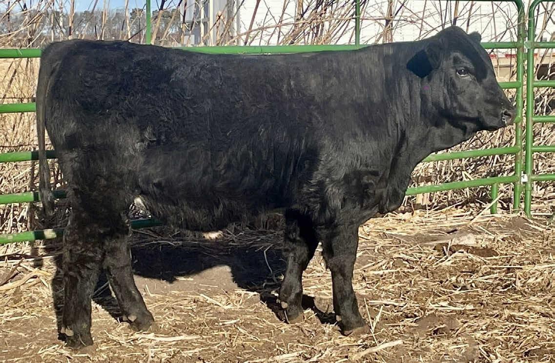 A Millards Duke son whose homozygous black with a 1/4 Fleckvieh influence, offering exceptional growth backed by both EPDs and DNA. A yearling weight EPD of 142 places him in the top 15% of the breed, while a low RFI supports efficient feed conversion in a performance-driven commercial program.