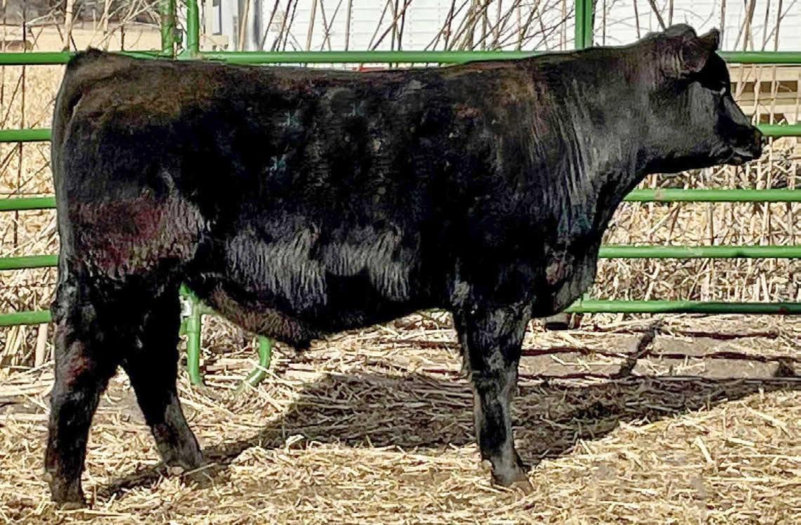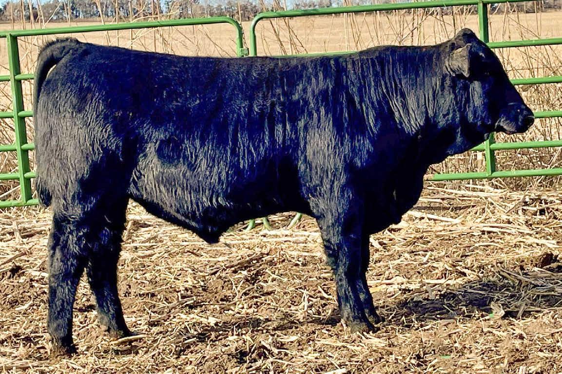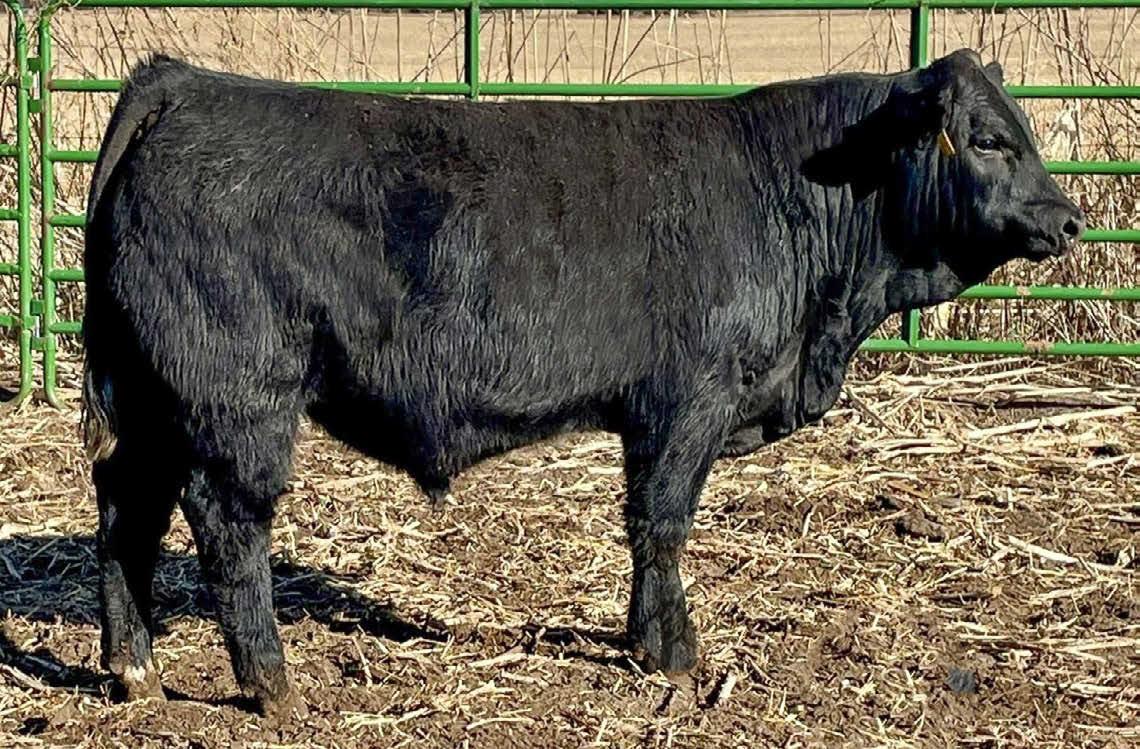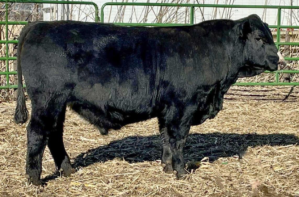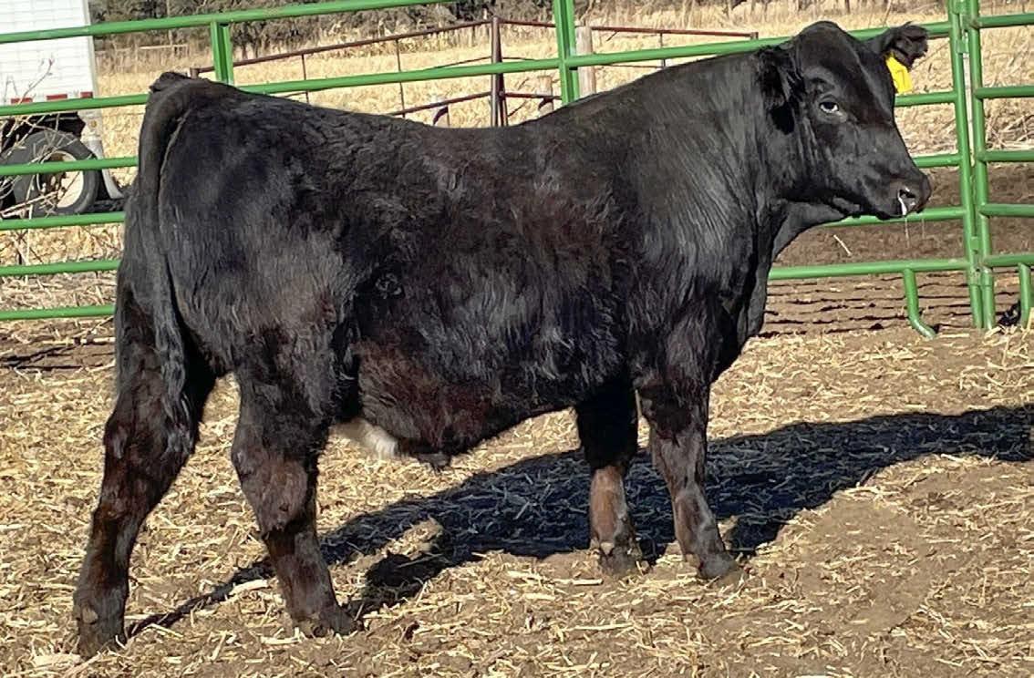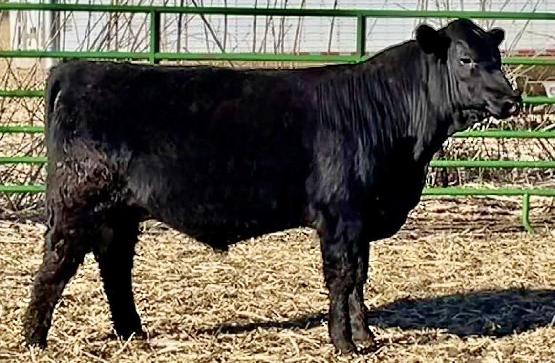 A Millards Duke son whose homozygous black with a 1/4 Fleckvieh influence, offering exceptional growth backed by both EPDs and DNA. A yearling weight EPD of 142 places him in the top 15% of the breed, while a low RFI supports efficient feed conversion in a performance-driven commercial program.