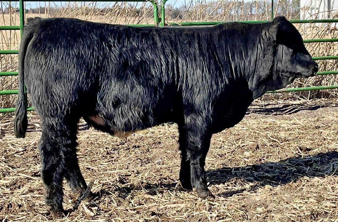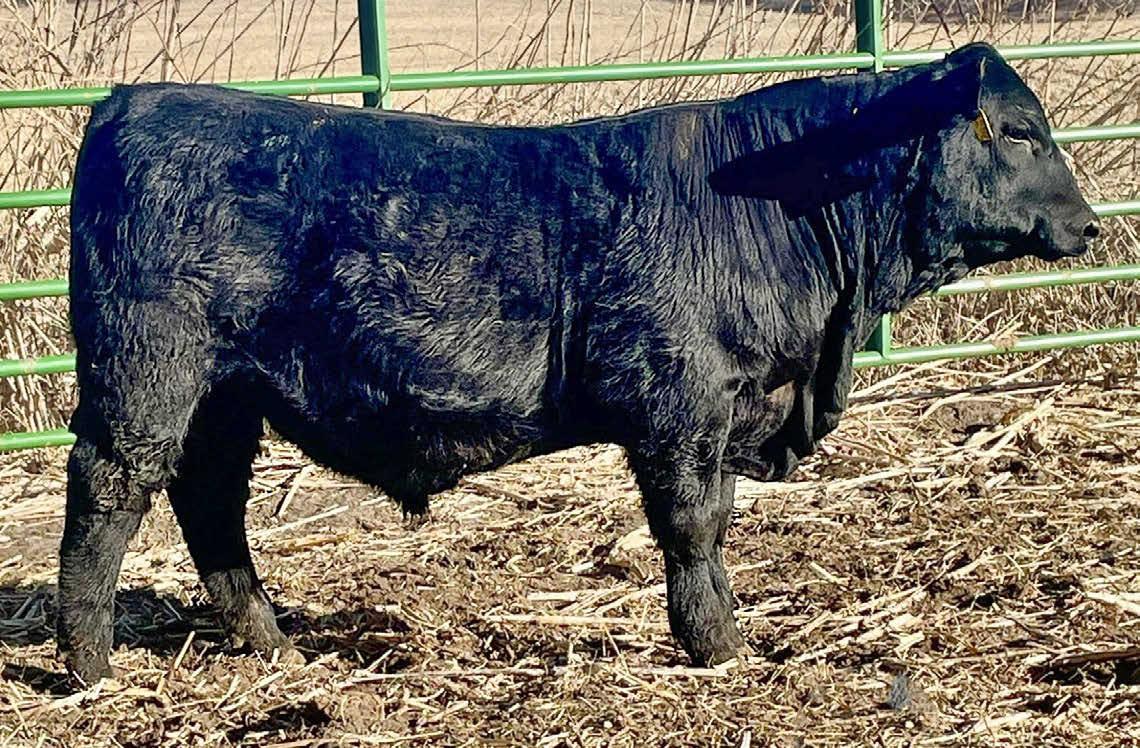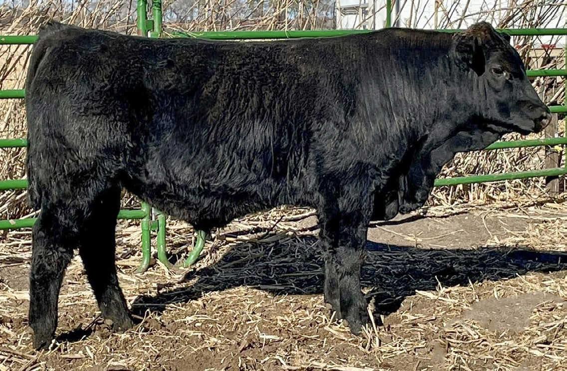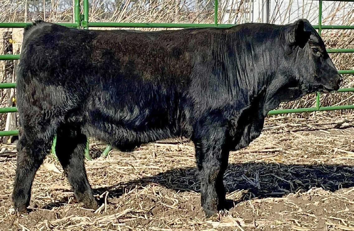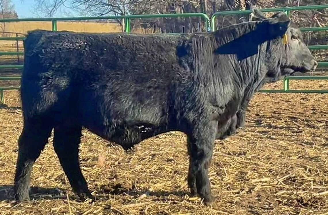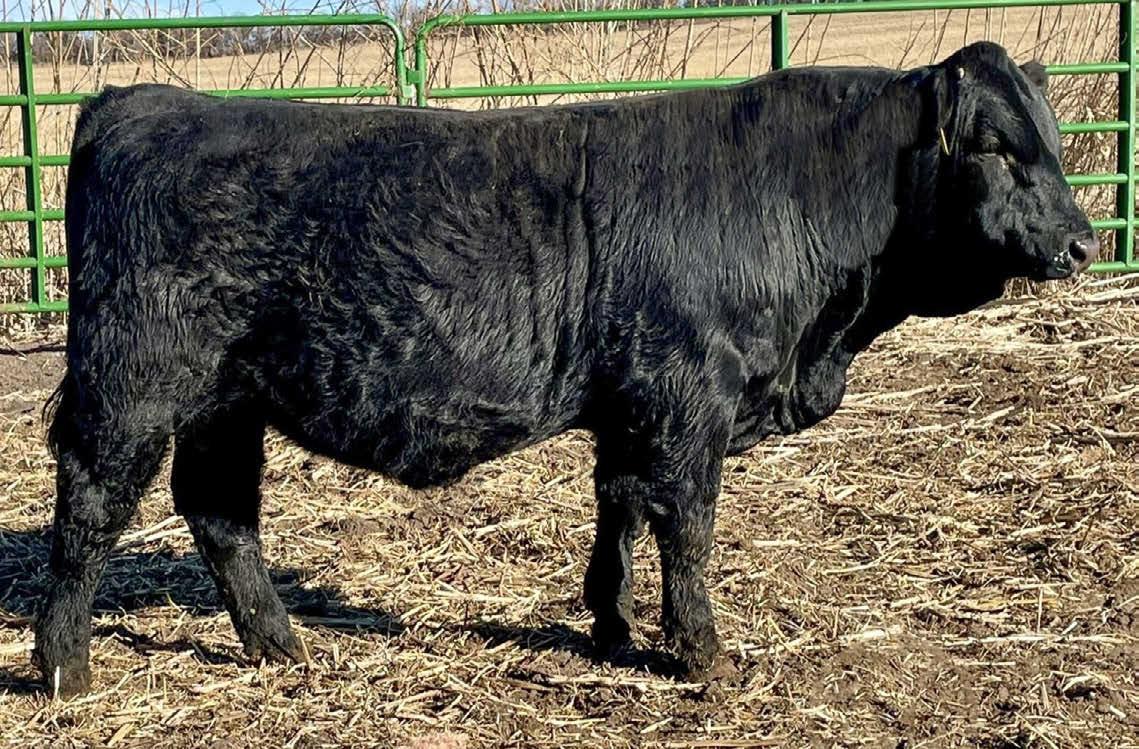 A Millards Duke son whose homozygous black with a 1/4 Fleckvieh influence, offering exceptional growth backed by both EPDs and DNA. A yearling weight EPD of 142 places him in the top 15% of the breed, while a low RFI supports efficient feed conversion in a performance-driven commercial program.