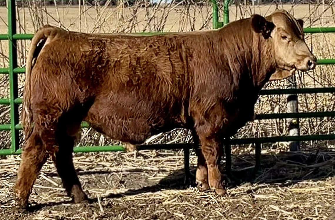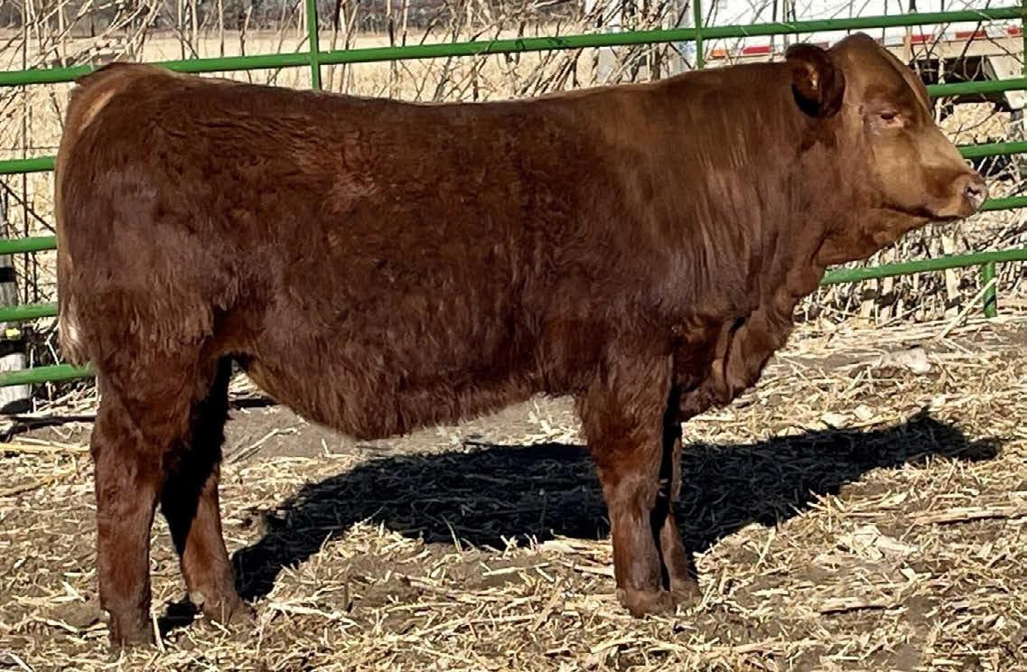 Designed for use on red Angus cows, out of our best cow, carrying 3/4-blood genetics with 1/4 Fleckvieh influence. A