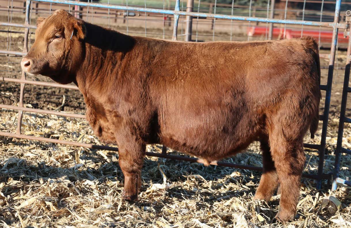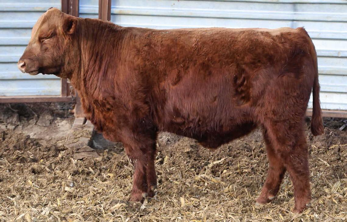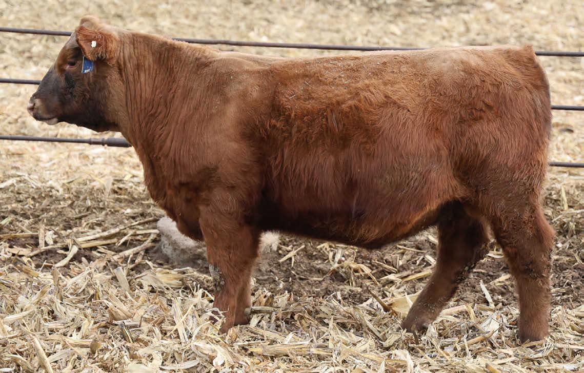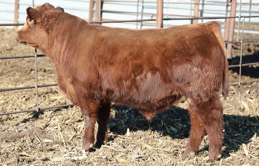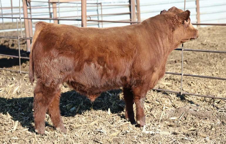 N016 is a heifer bull prospect noted for modest growth, high marbling, and heavy carcass weights. His granddam, Bieber Daphine 178Z (an OLY903 daughter), was among our topproducing Red Angus cows, recently retired at nearly 14 years old.