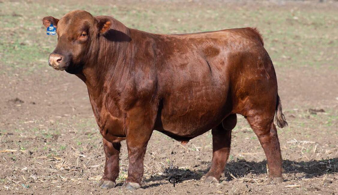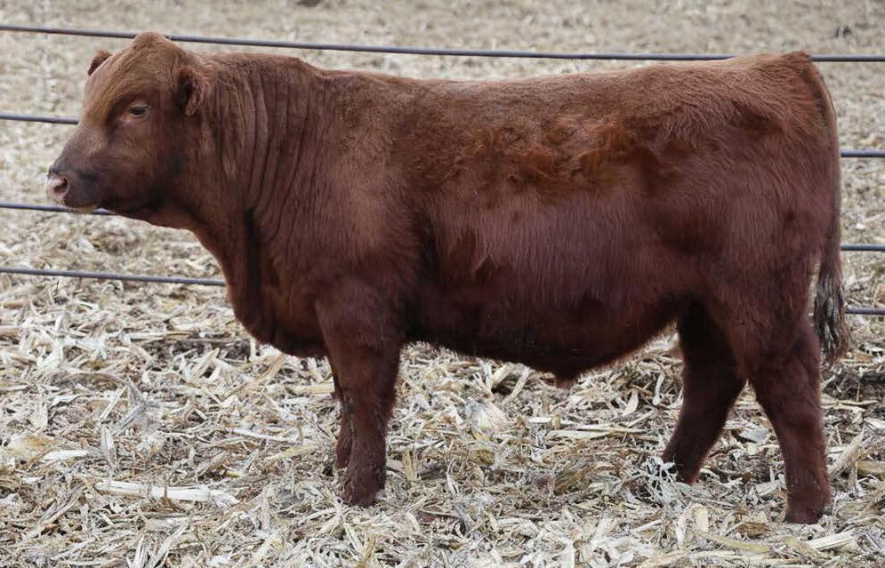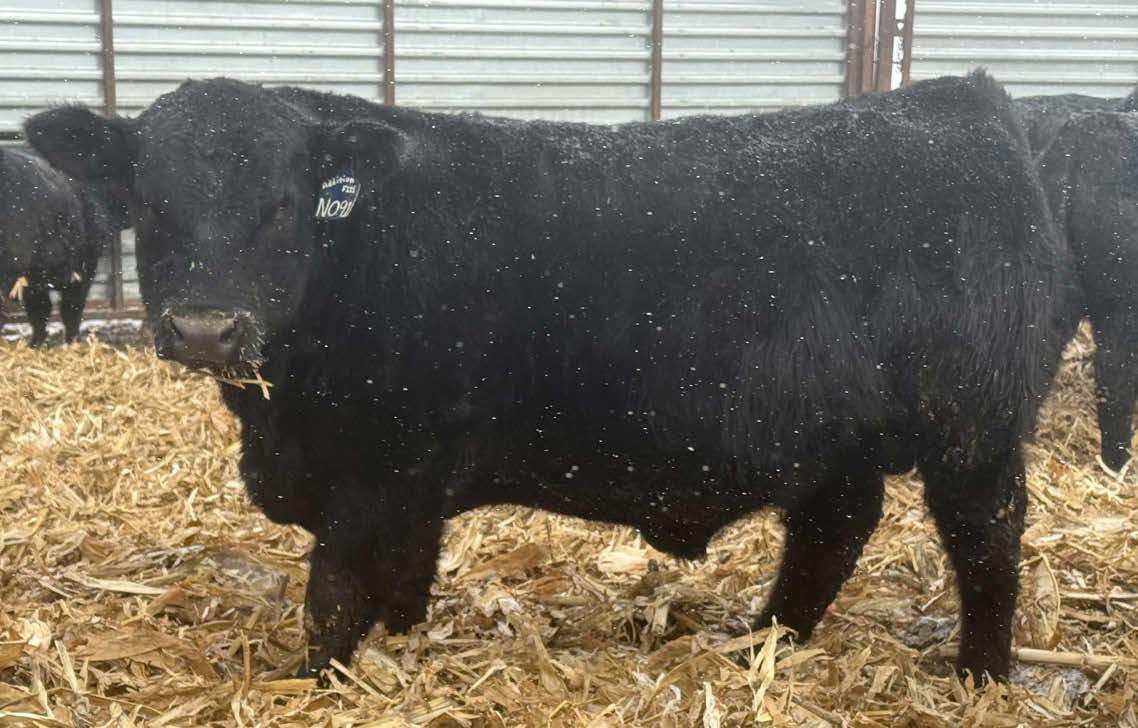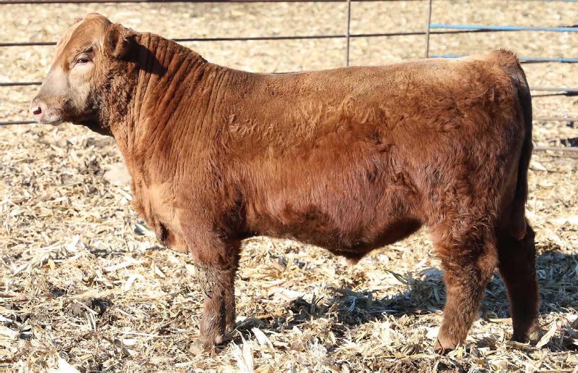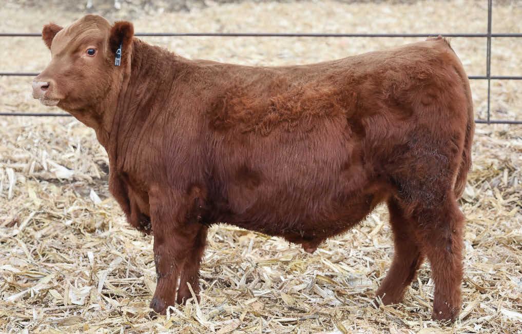 N016 is a heifer bull prospect noted for modest growth, high marbling, and heavy carcass weights. His granddam, Bieber Daphine 178Z (an OLY903 daughter), was among our topproducing Red Angus cows, recently retired at nearly 14 years old.