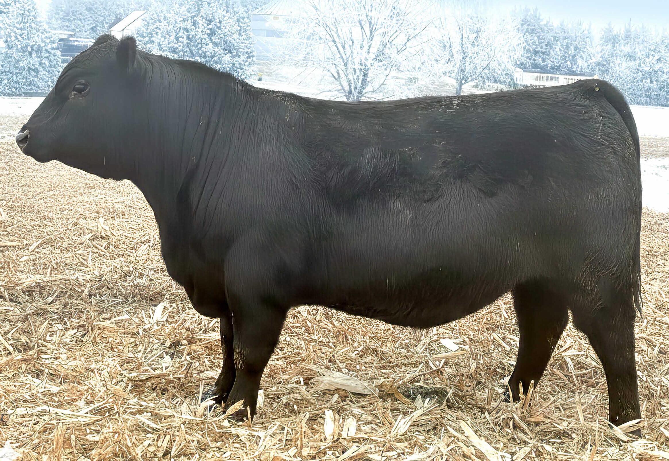 This National 390C son demonstrates outstanding performance across key EPDs, including calving ease, growth, maternal traits, feet, and carcass quality. He is out of an exceptional Wall Street female with a distinguished pedigree containing notable sires such as KCF Bennet Absolute, Mytty In Focus, and Rito 6i6.