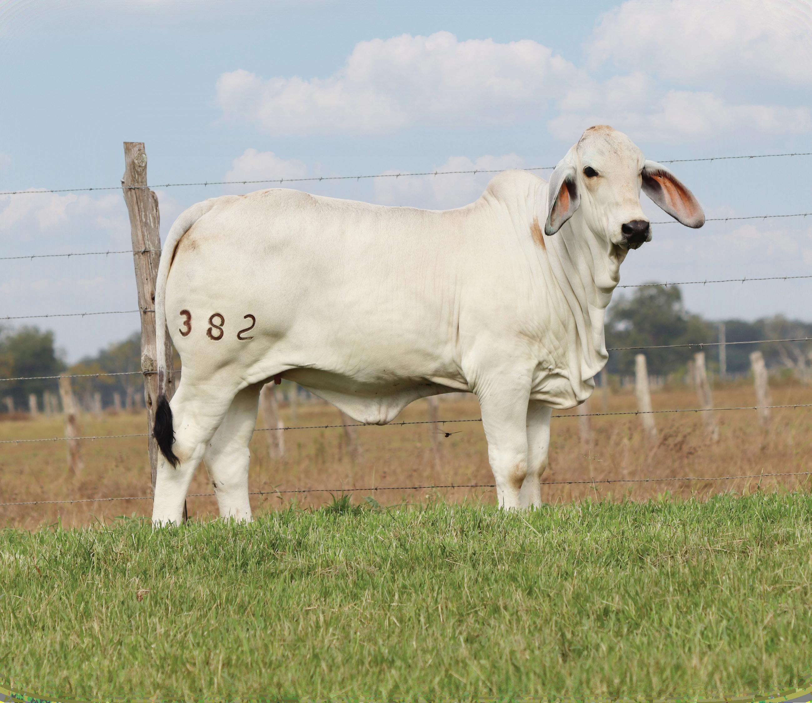Visually, 366 is a masterpiece; her strength over her top line, width across her center portion, clean underline, muscular definition, impeccable bone structure, and exquisite breed character make her a sight to behold. Her dark pigmentation along the tips of her ears matched with that stunning uniform grey Brahman color adds to her allure.