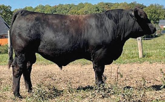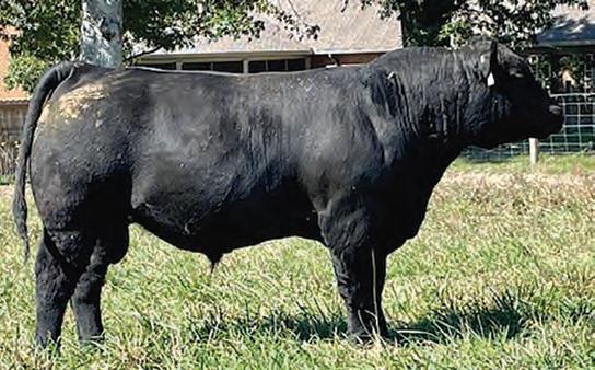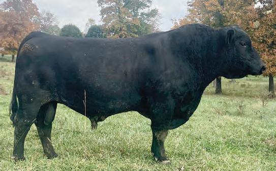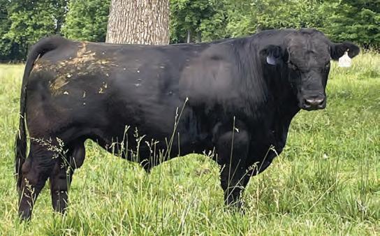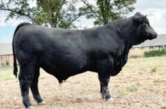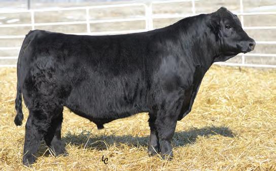 Heres and upstanding kind of Bold Ruler son by a first calf heifer that should add length, frame, and performance to his calves. He has a balanced set of EPD's and performance data starting off at 85 lbs and weaning at 715 lbs. He could work well on a mixed set of medium sized cows to add performance and remove color as he is Homo. Black.