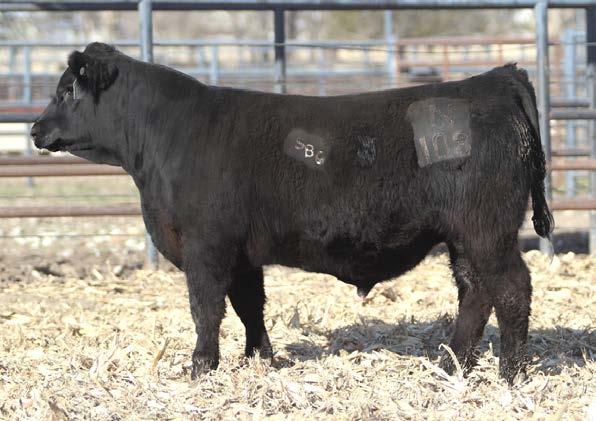 Lot 34 combines growth and maternal strength, ranking in the top 15% for eight different EPDs while maintaining a triple digit TI. He’ll not only add dollars to your calf check but also leave you with excellent replace ment females. He comes from a proven cow family, as J368 has yet to miss.