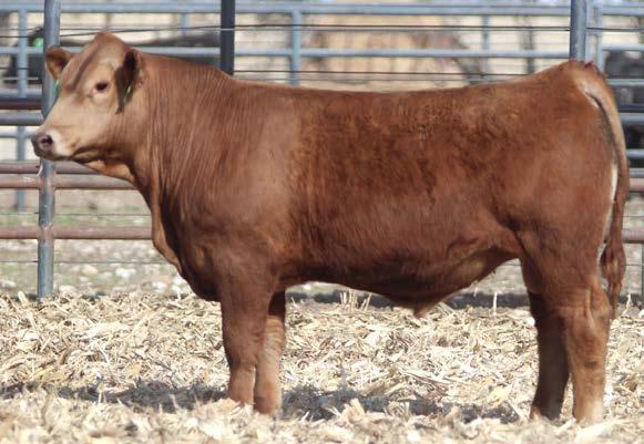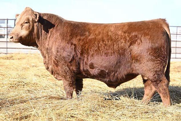 Lot 61 is a taller made, red halfblood Simmental who brings impressive growth potential, ranking among the strongest performers in this divi sion. His added frame and performance make him a natural fit for cow use.