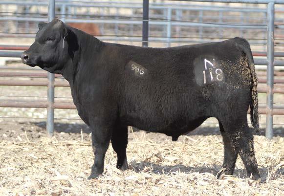 N113 is the only 1/4 Simmental, 3/4 Angus bull in the offering. If you’re not quite ready for a halfblood but want to introduce a touch of Simmen tal influence, he’s an ideal place to start. His C271 dam has produced and sold numerous bulls for SBG and is also the granddam of Lot 33, adding even more confidence to the consistency behind this pedigree.