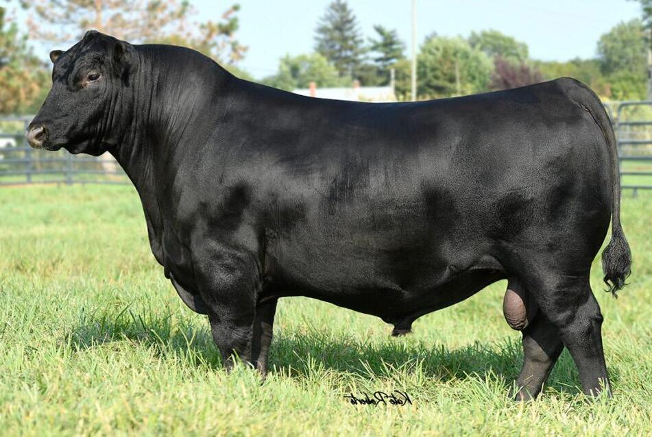 Is a stout, growth oriented bull with added frame and length of body. His performance profile and calving ease suggest he is best suited for use on mature cows only.