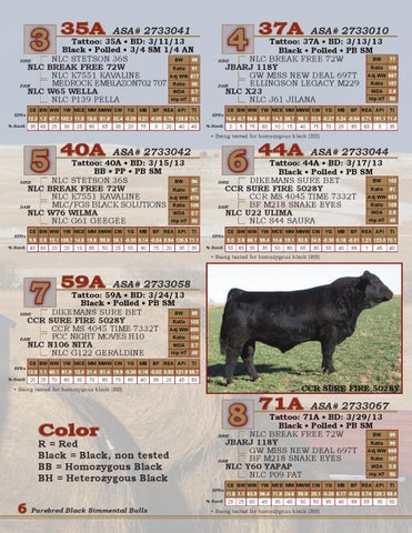 Tattoo: 35A • BD: 3/11/13 Black • Polled • 3/4 SM 1/4 AN BW 95 NLC STETSON 36S SIRE NLC BREAK FREE 72W Ratio 91 NLC K7551 KAVALINE Adj WW 617 MEDROCK EMBLAZON702 707 Ratio 99 DAM WDA 2.7 NLC W65 WELLA Hip HT 51 NLC P139 PELLA EPDs % Rank