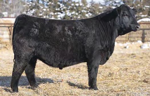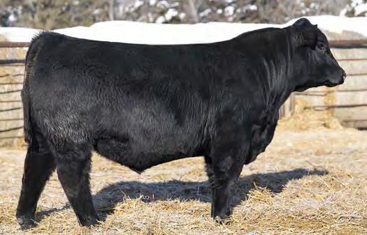 A purebred lntimidator son with strong weaning and yearling performance ina homo black, homo polled package.