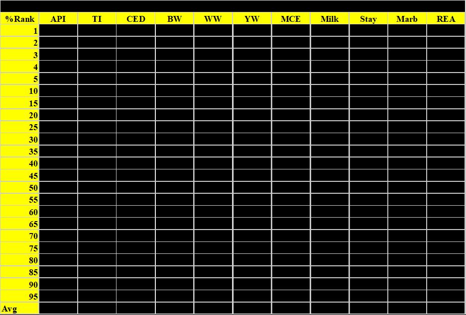 Yearling Weight (YW) – Remember pounds aren’t free, it is important not to outgrow your environment! Breed Average 115.7