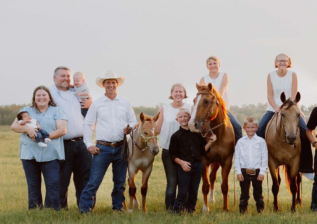 As our 58th annual bull sale comes around, it gives us time to pause and reflect. 2026 marks another year of progress toward our goal of producing and marketing quality livestock that have been developed through multi-trait selection. 2025 was full of family with Tina home on furlough for eight months, although it went by super fast! Miles and Kim enjoy filling their time taking in all of the grandkid activities from music performances to the gym, they are each of their grandkids number one fan! Miles is enjoying the opportunity to breed a few more horses each year and there doesn’t happen to be a shortage of indivduals that are willing to scratch and love on colts. Kevin and Katrin continue their busy schedule with Kylee, Kelli, and Cooper. Kevin actively helps with the local Farm Bureau organization and coaching youth wrestling. Katrin is heavily involved in South Dakota Cattlewomen’s Organization and homeschooling Kelli and Cooper. All three kids are involved in 4-H and youth sports as well as helping out on the ranch alongside their parents. They got a much deserved vacation to Turks and Caicos this fall. Wyatt and Zana added some more excitement this year with the adoption of Zeke Louis! Wyatt stays busy working for South Dakota FFA and Zana is learning about being a boy mom! Tina continues her work in Uganda teaching missionary children, learning the language and working with many on the mission field. Adam and Tara reside near Sioux Falls and are enjoying watching their children enter into grown up life! Their oldest, Lydia, got engaged on Christmas! Geneva, Levi, Anna, and Caleb are all thrilled and keep mom and dad busy with soccer, music and home school! 2026 is shaping up to be another eventful year full of God’s blessings. DeJong Ranch has been a family operation from its inception and continues to mold our values of faith and family into our cattle business.