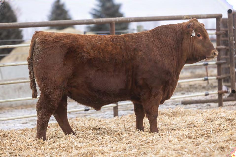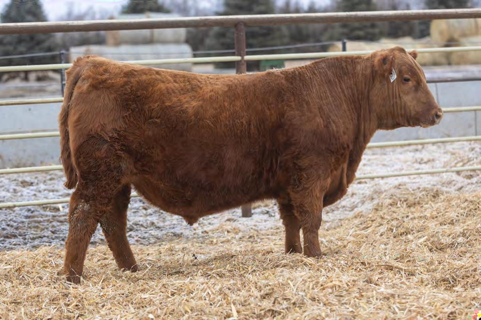Larson Flo-Marie 245 is a proven donor and was Sam Twedts pick in the 2017 VF Red Angus for $15,000. She quickly became well known for producing tremendous daughters that have extreme eye appeal, are deep made and big boned with picture perfect udders! She also produced lot 1 in the 2021 Twedt sale, and is the granddam to lots 1-6 in his 2025 sale. Her granddaughter also commanded $25,000 is the 2024 Red Select sale in Mandan! This cow doesn’t miss!