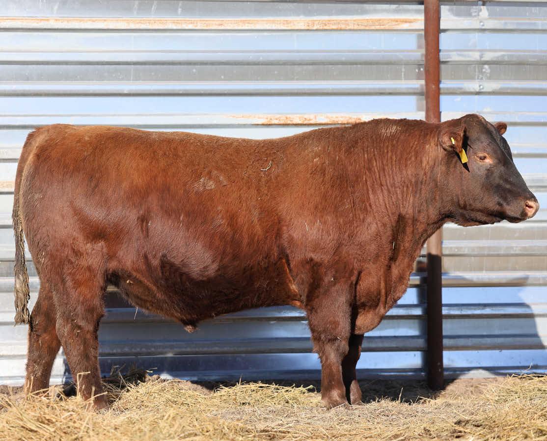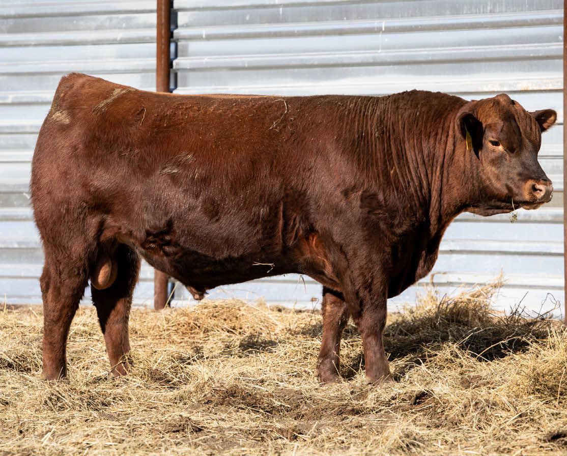 This smooth-made cow bull offers added capacity while remaining sound and functional. He’s out of a deep-ribbed, easy-keeping cow, bringing maternal efficiency.