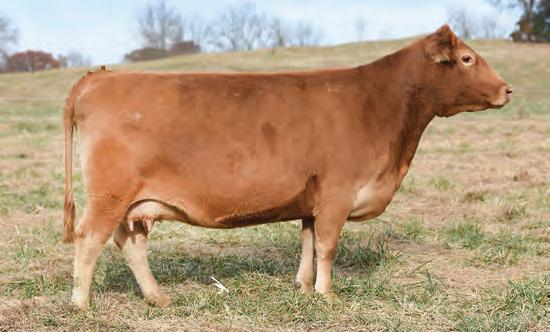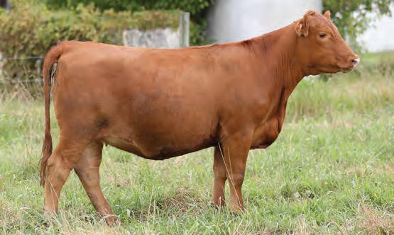 257B is truly a foundational female. She is ideal for the forages and environment in our region. 257B is an early-shedding cow with tremendous body density and excellent fleshing ability. Her first calf (268D) was an outstanding heifer that became a major contributor to the Red Hill program, and she sells as Lot 139. 257B is the dam of Red Hill Burley 99J. He was purchased by Genex, All Beef, and J-C Simmentals. We retained 257B’s 2023-born bull, 415L. He is one of the most outstanding red Simmental bulls ever produced at Red Hill. She also has two yearling flushmate bulls sired by Red October that show a lot of promise and will be featured in our Spring 2026 sale. We also retained and used 239E, 257B’s 2017-born bull calf. We have four active daughters of 257B in our herd. In addition to her above-average production ratios, her progeny have a 103 ratio for IMF and a 110 ratio for REA. 257B is a donor-caliber female that would be ideal for a start-up breeder or for adding additional genetic variability to an established herd. She will continue to influence the Red Hill program for years to come.