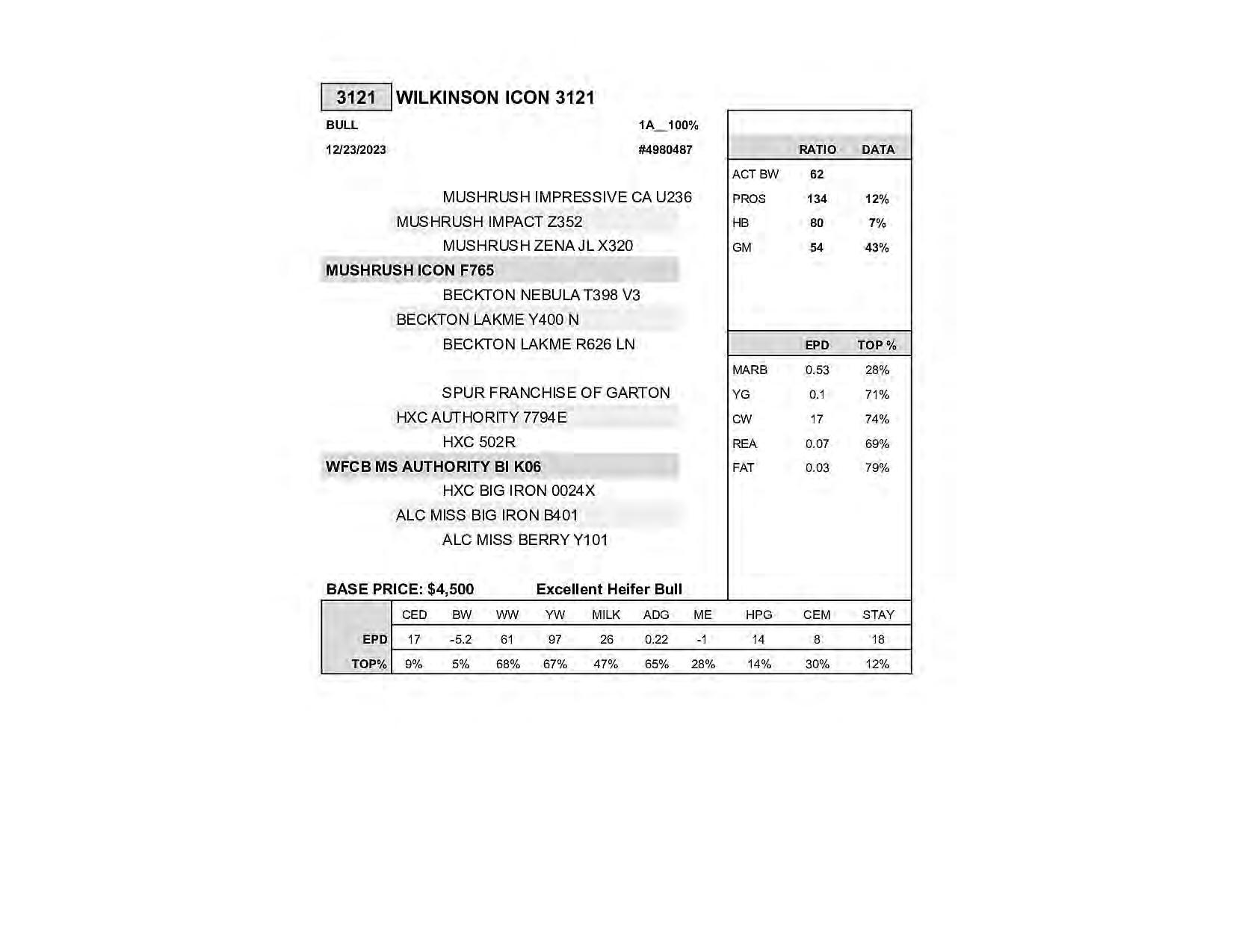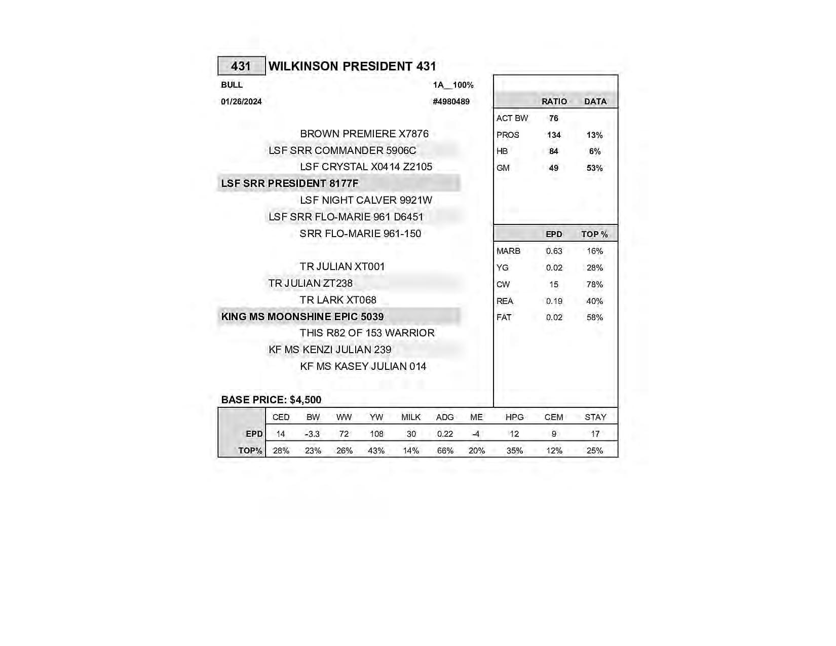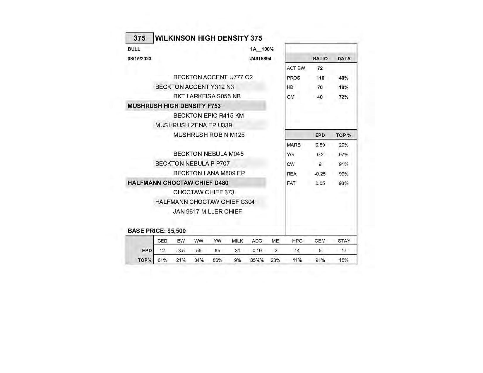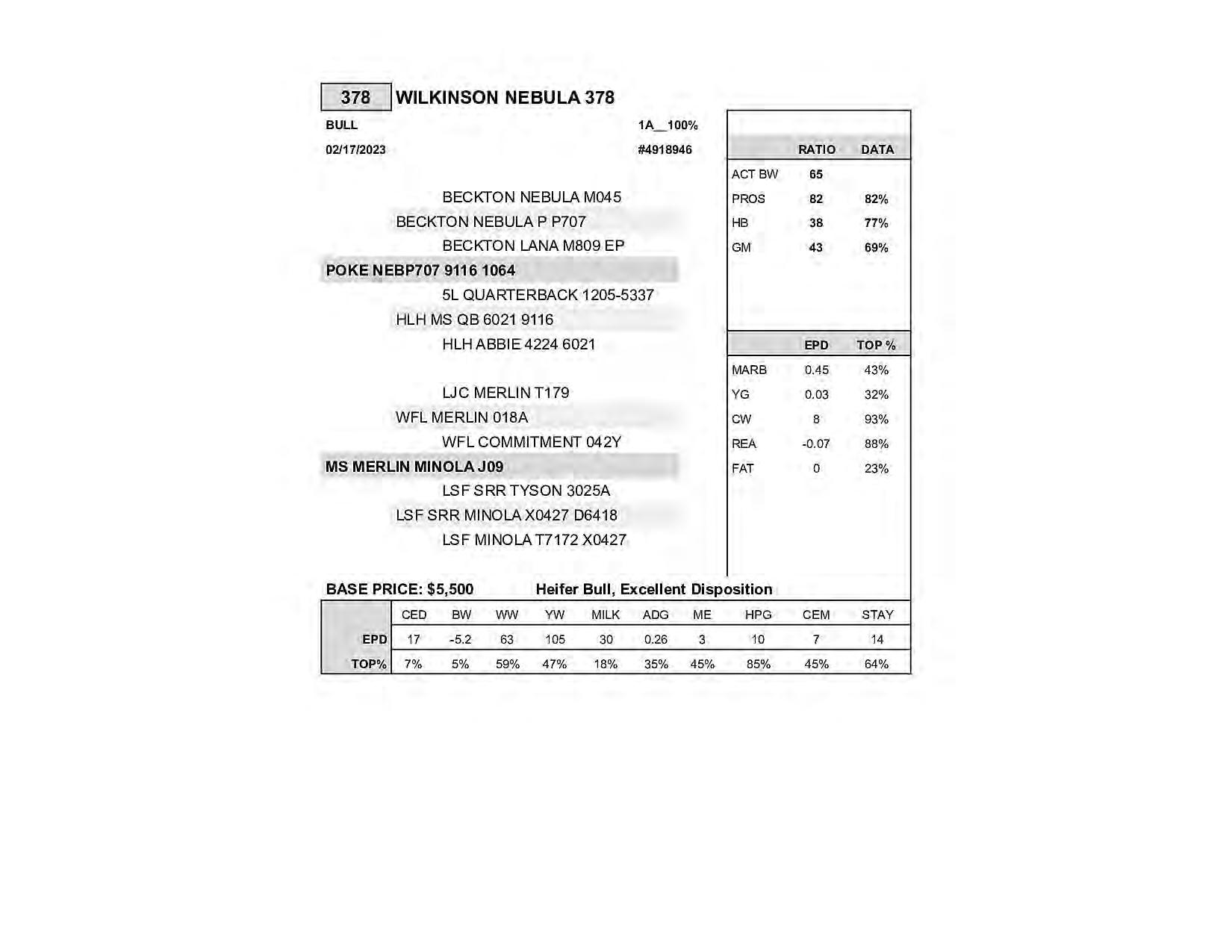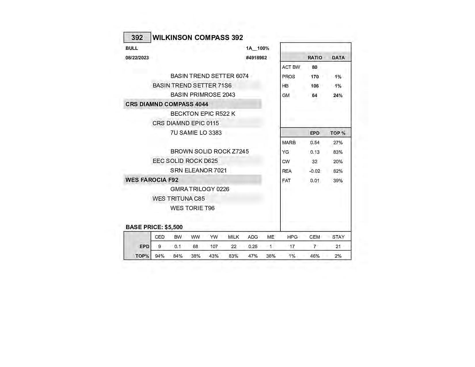 This year we made a few changes to base prices for di erent bulls. Along with the current record-high price market, our need for a few more bulls on the ground this year has led us to price some animals higher, due to our desire to possibly retain them within our program. However, we are happy to sell them if we can get what we feel they are worth. Furthermore, there are a few bulls premiered without a price (382 - 1A Red Angus and L04 - PB Simmental). These bulls have been standouts since birth, and due to their genetic potential and phenotype, we are not putting a price on them. However, we would be open to negotiation on outright or part-interest purchase to any parties interested. If someone is interested and would like to visit about these 2 bulls (382 & L04) please reach out for more details.