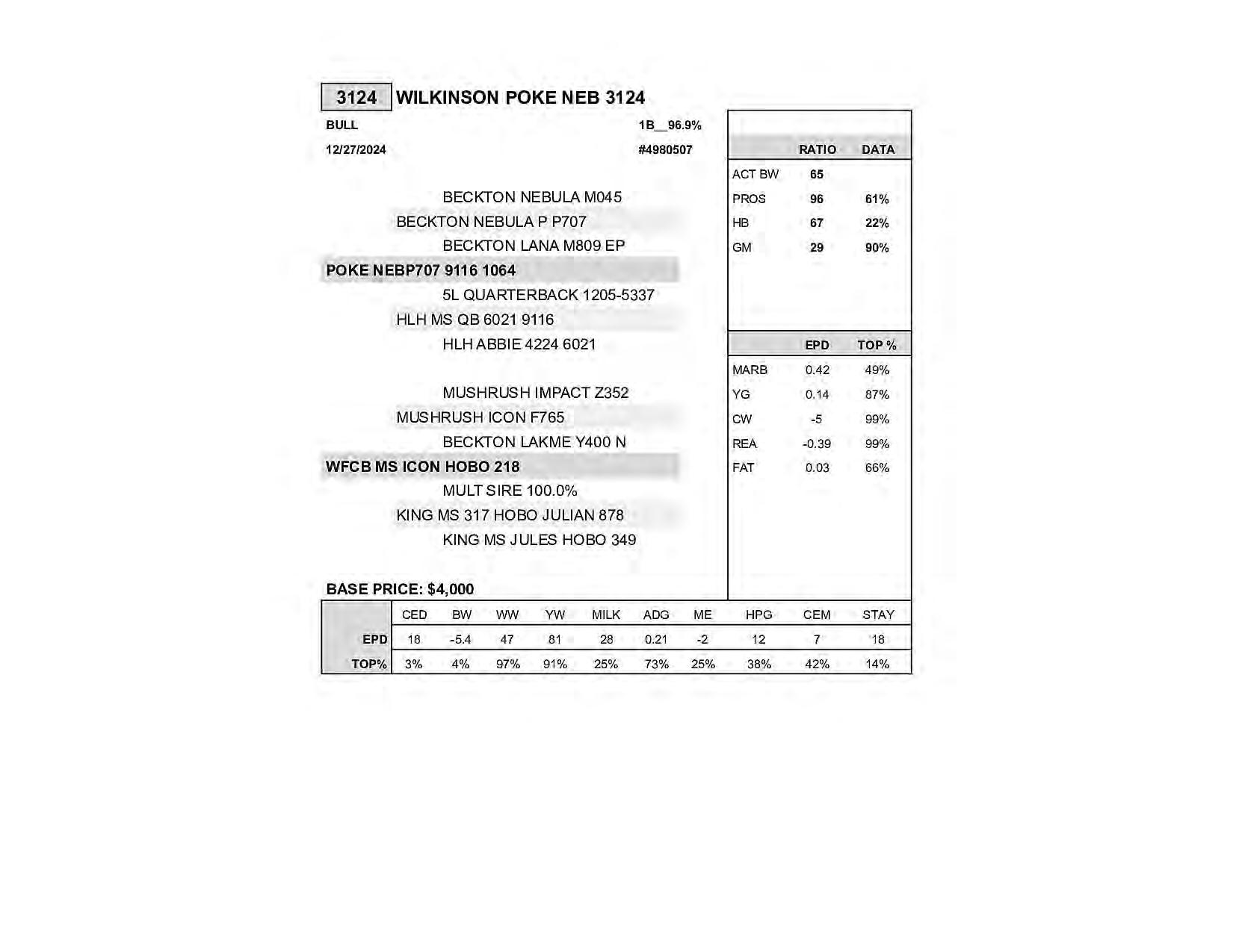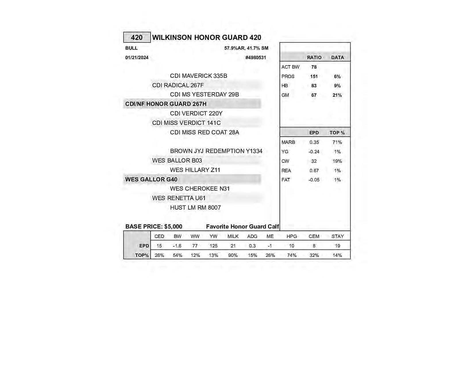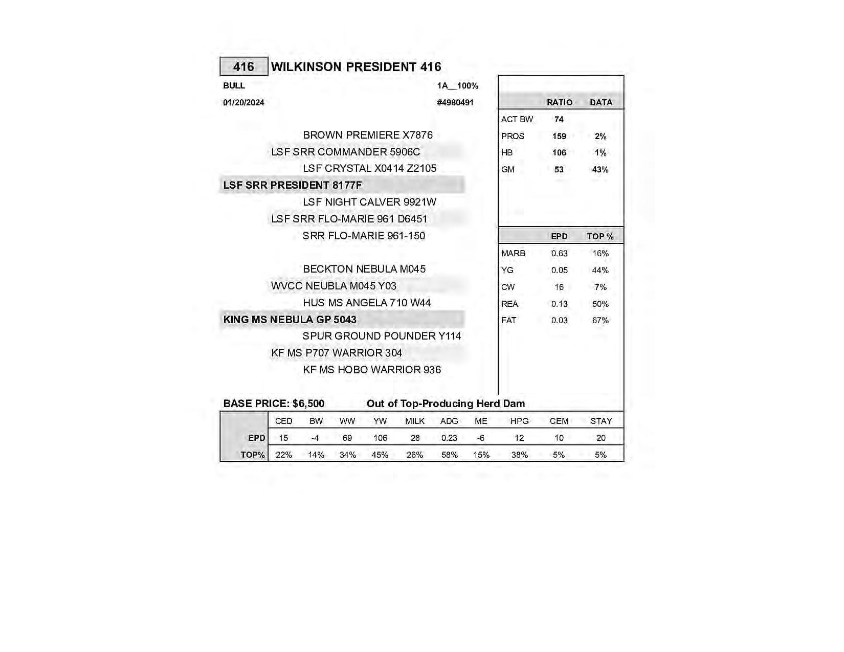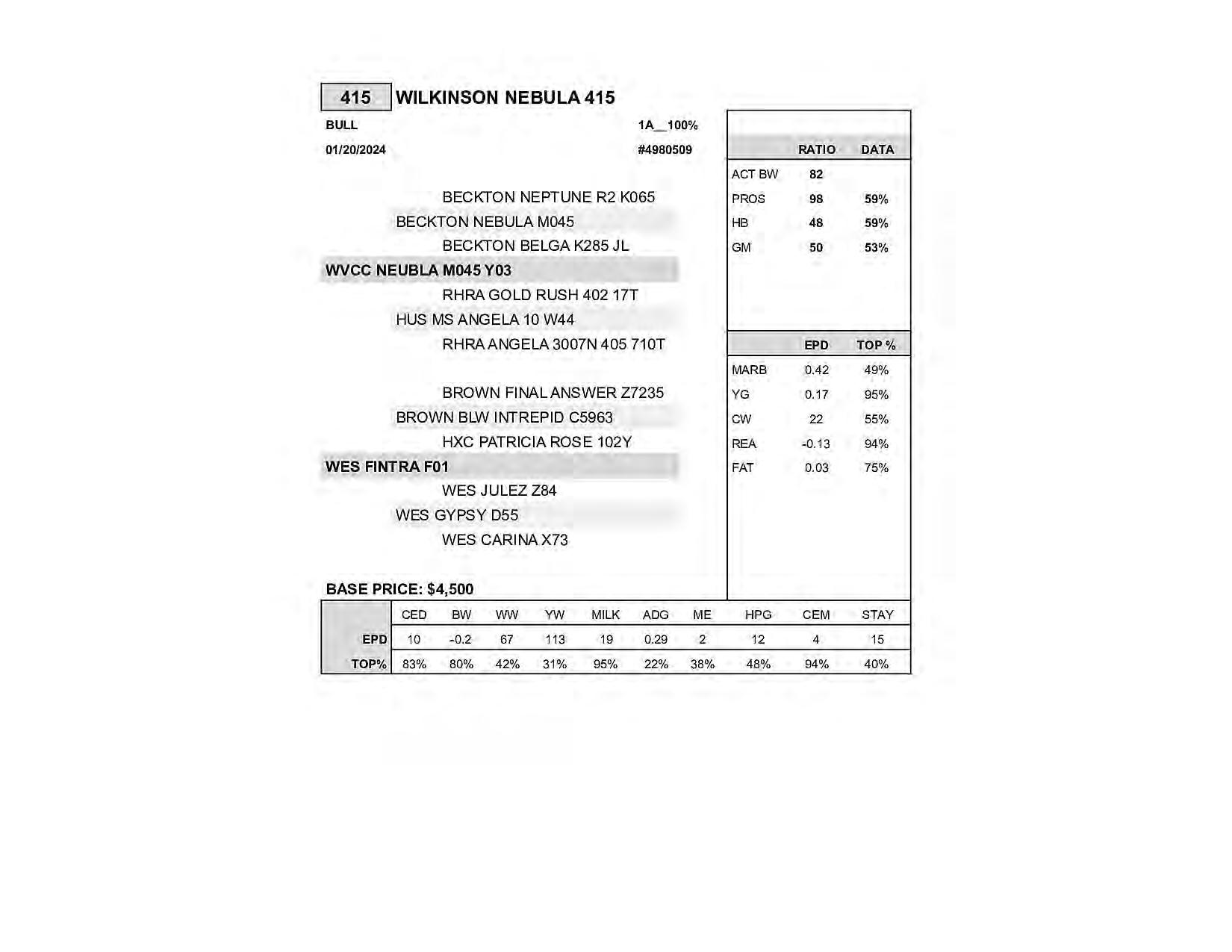 Sale Format: The sale will be run on a private treaty bid-o format. Every bull is given a base price and interested parties are recorded for each bull leading up to and on sale day. On the sale date, we then proceed with phone bidding between all interested parties for each bull. Buyers have until 5 pm on March 9th to express intent to bid on all bulls of interest, at which time bidding will begin and no new entries will be accepted.
