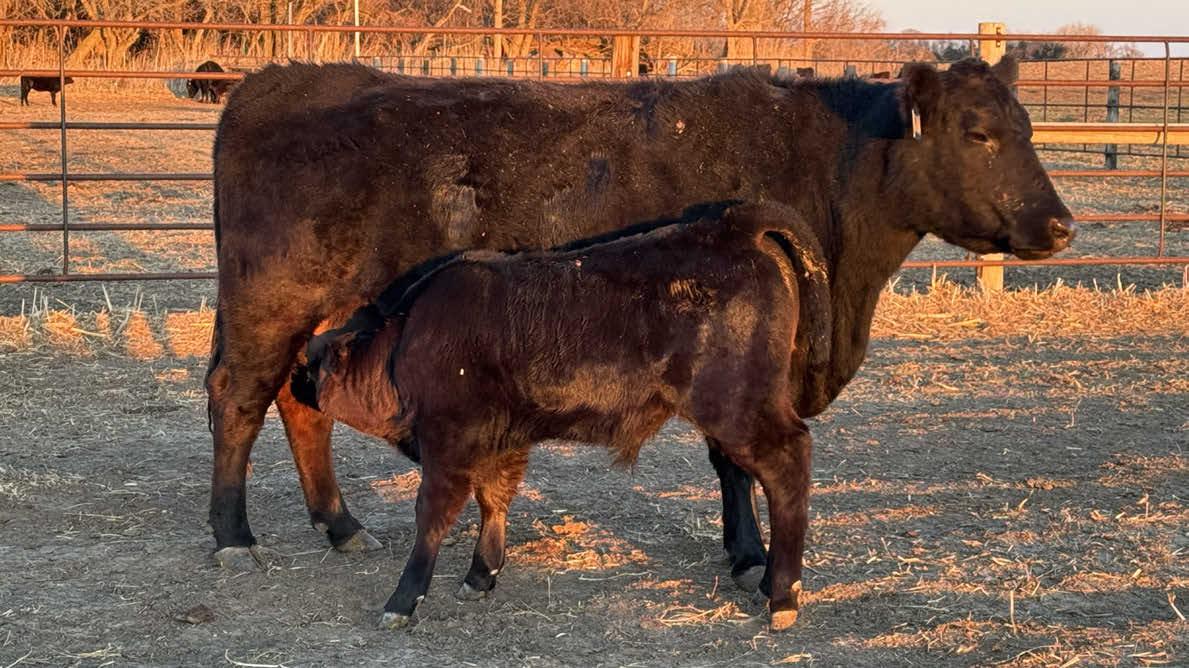 CALVING EASE H A Bartels Big Easy calf here out of donor Poss Pride 0623. 0623 had several progeny sell over average at the 2025 Poss Angus sale and now resides in Bassett with A&B Cattle. Big Easy has been our main herd sire the last few years. Lot 8 has a powerful look and a balanced EPD profile. A full brother sold last year near the top end in our sale.