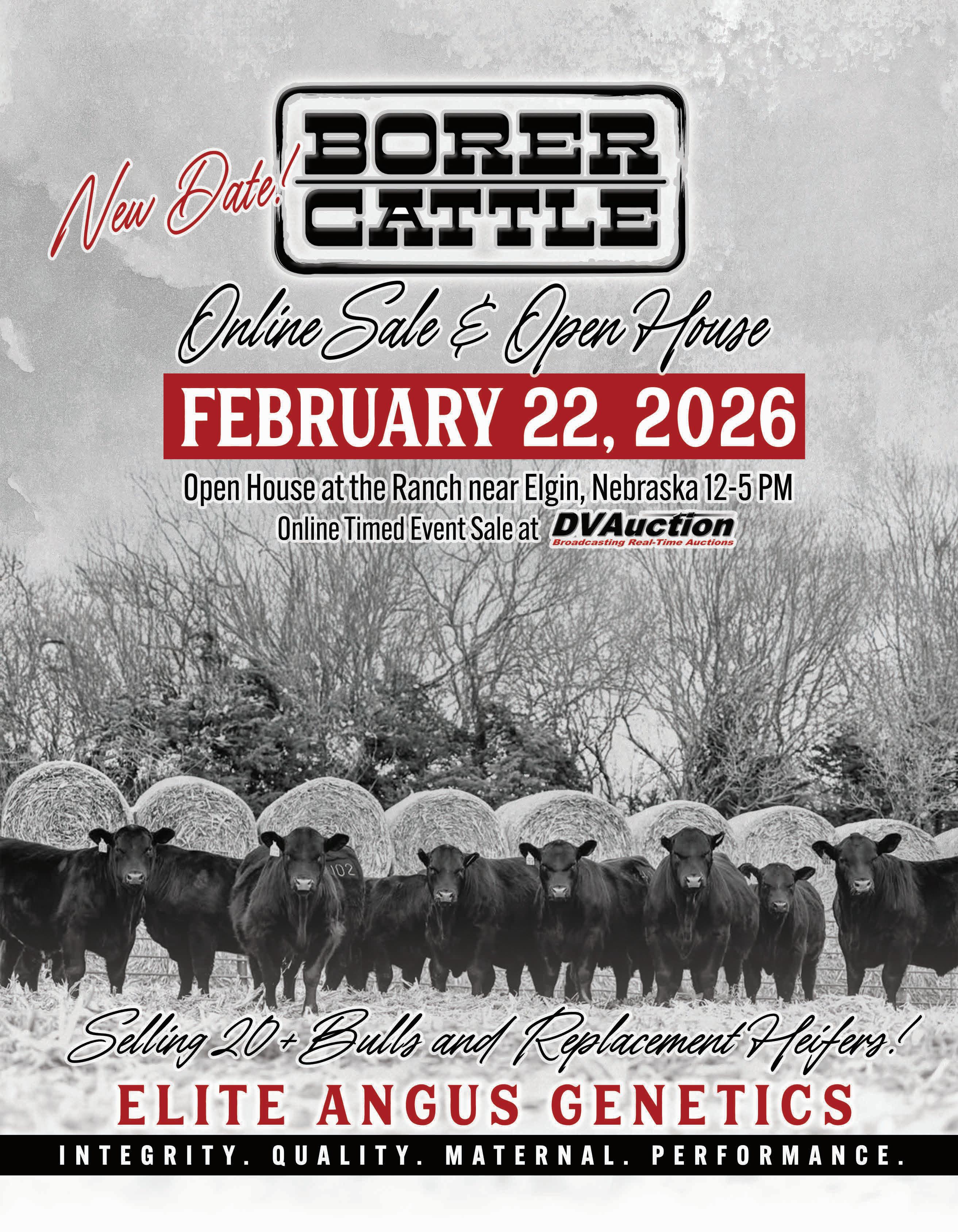 Borer Cattle assumes no liability in case of an accident. All cattle will sell under the terms and conditions recommended by the American Angus Association.