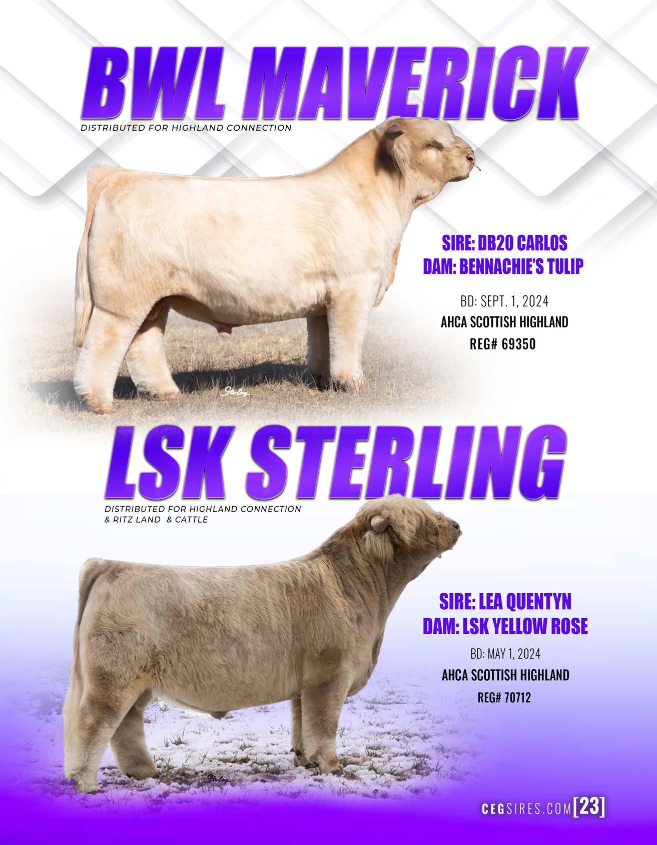 DISTRIBUTED FORHIGHLANDCONNECTION, RITZLAND& CATTLE, AND WHISPERINGOAKHIGHLANDS SIRE:HIGHLANDSPICEHICKORY DAM:TRAFALGARGWEN