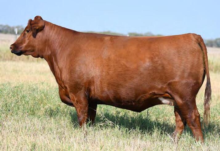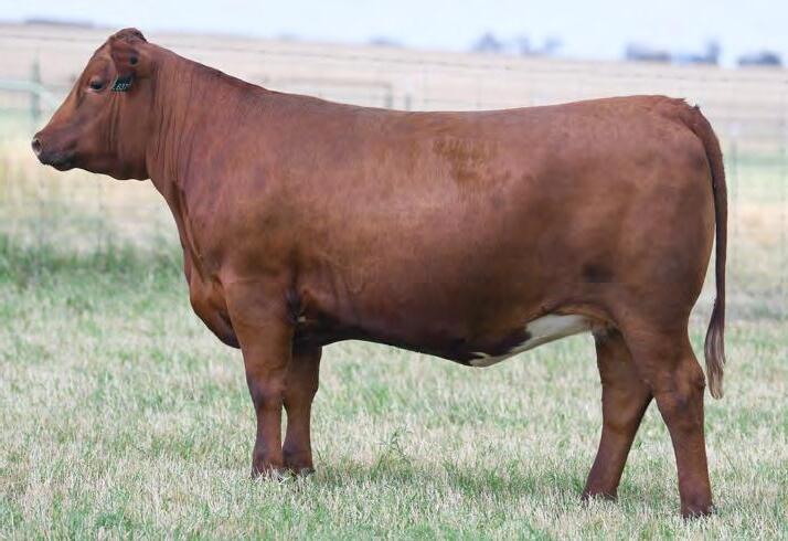 Ifyouarelookingforafoundationfemaleloadedwith cowherdtraits,Lot122couldbeyournextdonor. Withsingle-digitranksforFertility,MaternalCalving Ease,HeiferPregnancy,$Profitand$Ranch,she hastheidealtabulationtobuildyourherdaround. Perhapsmoreimportantly,shecomeswithmoderate size,slickhairedandeasyfleshing.