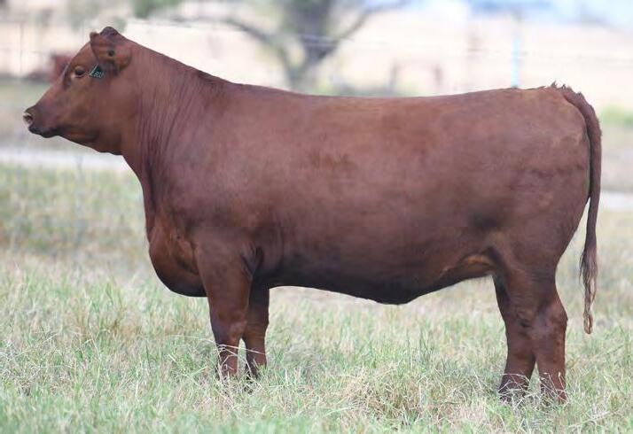 Lot127 proveswe'rewillingtoshareourtopperformers.Shepostedratiosof107weaningand108 yearliing.Hergooddamisearningherwayintoour frontpasturewitha353-daycalvingintervalandan averageprogenyweaningweightratioof107. HermatingtoBrownTopTierG242(#4118786), shouldguaranteeexcellentspreadfromCEDtoYW withsuperiorprofitindices.