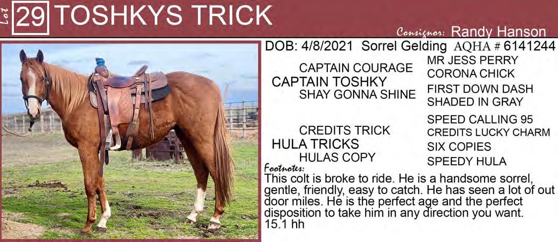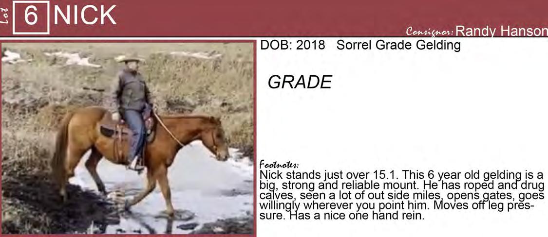 Lameness must be determined by Thursday following the sale. Soundness includes sound on all four, good in air, eyes, and does not crib. Cash, check or bank wire transfers are accepted. Wire transfers must be received by Tuesday following sale or animal will be held at auction barn at buyer’s cost.