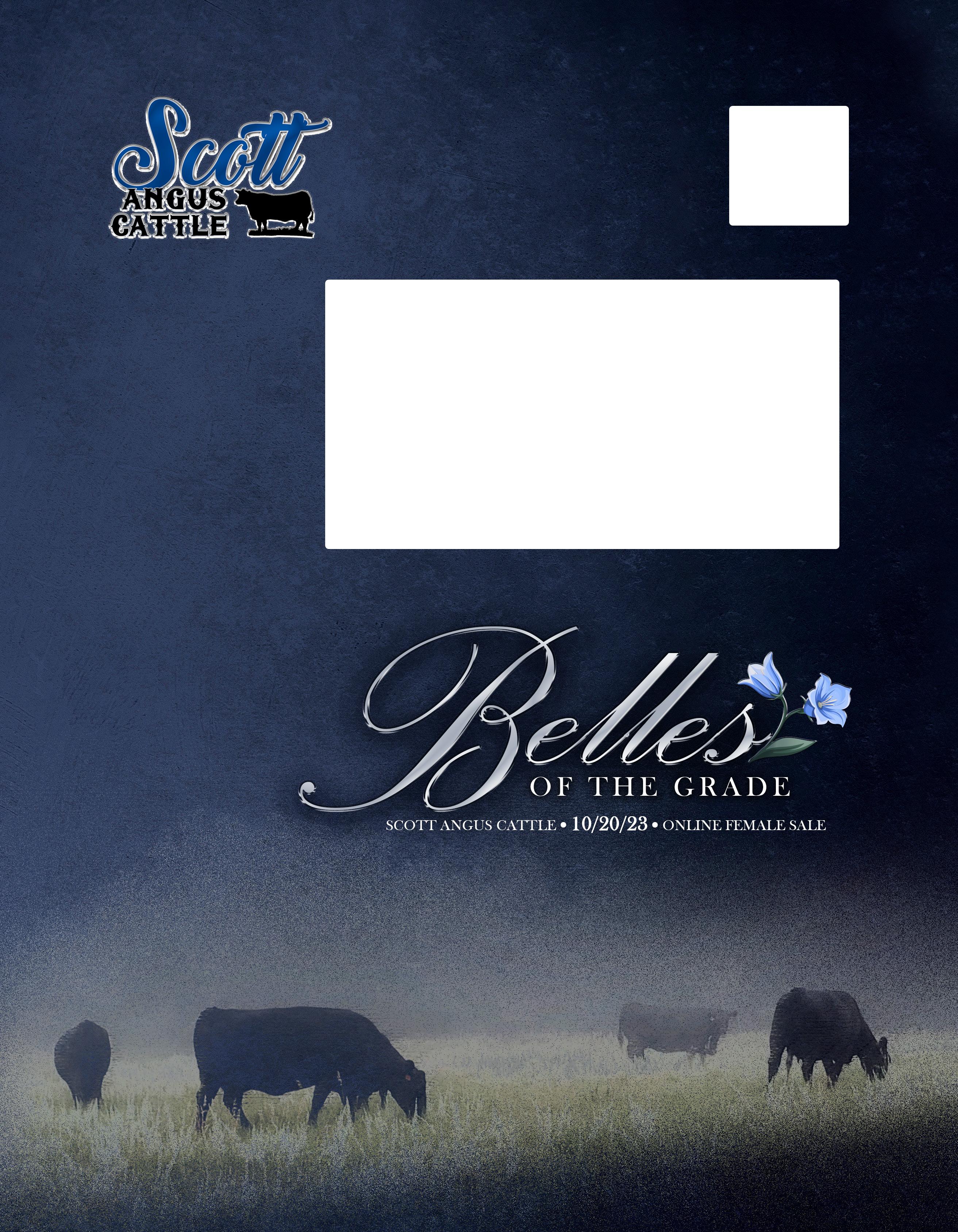 Welcome to our second annual Scott Angus Cattle: Belles of the Grade - Select Female Sale. We are offering a nice selection of our top end females: virgin heifers, bred heifers, bred cows, and elite embryo matings.