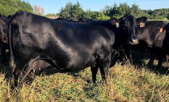 Her maternal granddam, Elba 1406, a powerful, broody, and deep bodied donor cow and maternal sister to SAV Peacemaker 3179. Her $100k dam, SAV Elba 1094, is a model Angus cow, the #1 milk EPD and ranks in the top 3 highest-incomeproducing cows in SAV history. SAC has retained two 1406 Sensation daughters who are two of our favorite milkin’ Jessies – or should we say milkin’ Elbas!