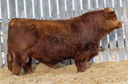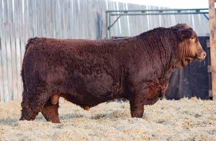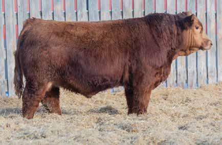 I once had a wise man tell me that when you find the right bull with everything you are looking for there will be no limit on how much you can spend….. boy was he right…. Rumble is a bull that we knew had to find his way into our program the second we saw him. Of course, with a $355,000 price tag it added a bit of stress. Once those first calves started hitting the ground, we knew it was the right decision but there was some relief once we laid eyes on them. Now with two calf crops under his belt and his offspring pushing to the top of both the bull and replacement heifer pens we are thrilled we did what we did! At weaning time many of his sons broke the 900lbs mark. Its early to say but we believe that Rumble could very well have the biggest influence on our herd from this point forward. His sons are impressive to say the least and his daughters have that brood cow look. Over the last two calf crops we have crossed him with several different ‘types’ of cows and he has surprised us by how consistent he was able to make them. These consistent traits include deep swing ribs, hair, meat, red colouring, pigmentation and performance. Now to add to that list is his udder quality of his daughters. With the first daughters calving this January, we are thrilled to report the udder size, udder shape, teat placement and teat size are tremendous and almost identical on every female! Here is your chance to own a piece of a very bright future!