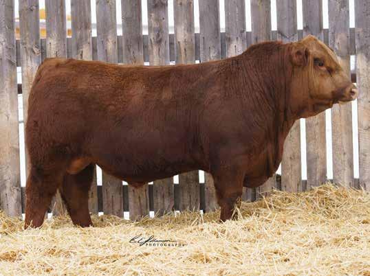 112H Polled Red Purebred · PG1337683 · EGC 112H · Feb 9, 2020 PERFORMANCE BW: 100 lbs AWW: 828 lbs AYW: 1446 lbs EPD’s CE: 6.5 BW: 5.2 WW: 84.2 YW: 128.9 M: 23.3 MCE: 2.9 MWW: 65.4 Sire of Lots 31, 32 and 35